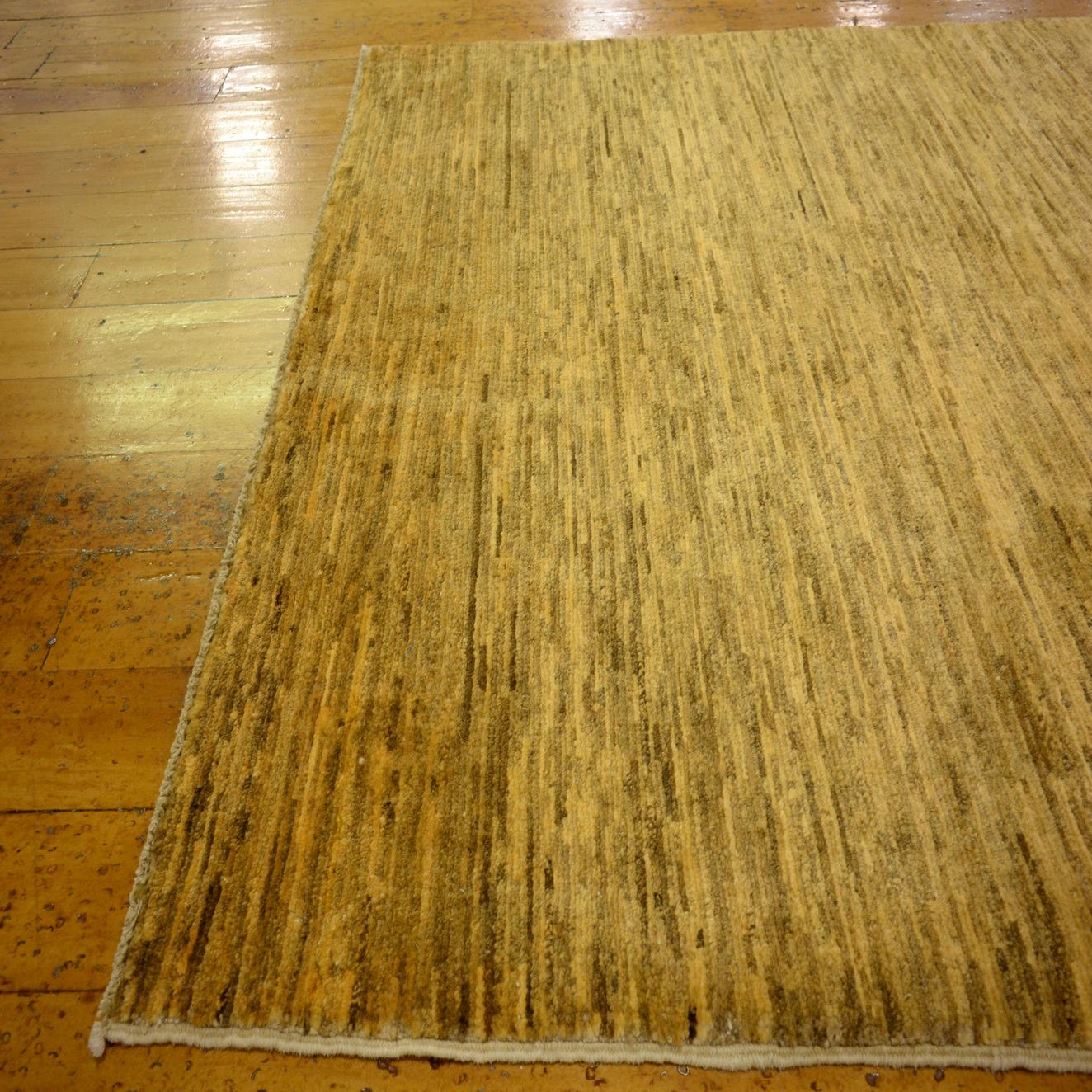 A 3x5 rectangular Modern Ziegler rug in varying shades of yellow and gold with a subtle striped pattern, perfect for an entryway.