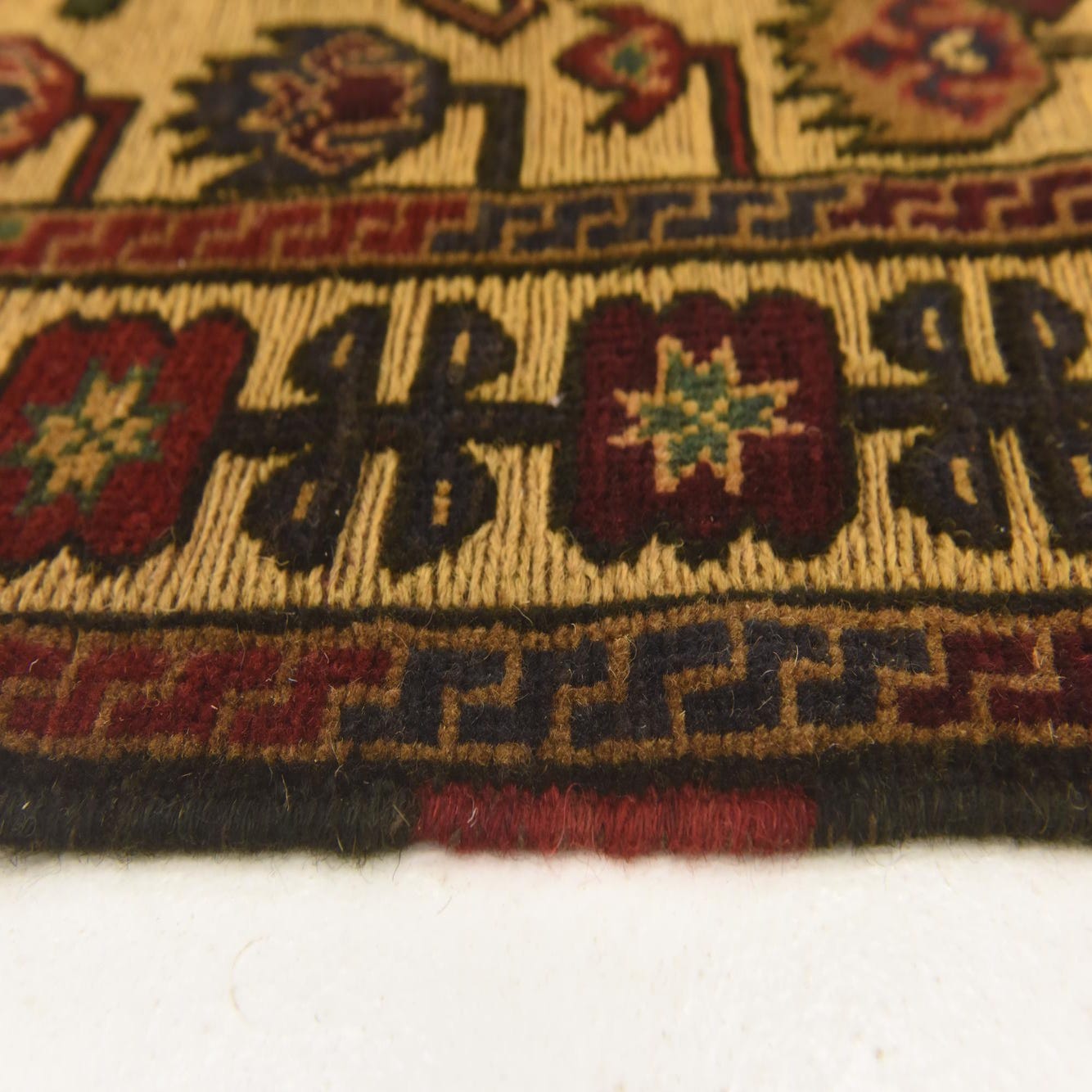 A 3x5 rectangular Sumak rug with a traditional Southwestern tribal pattern in yellows, golds, and deep reds, featuring a central medallion design.