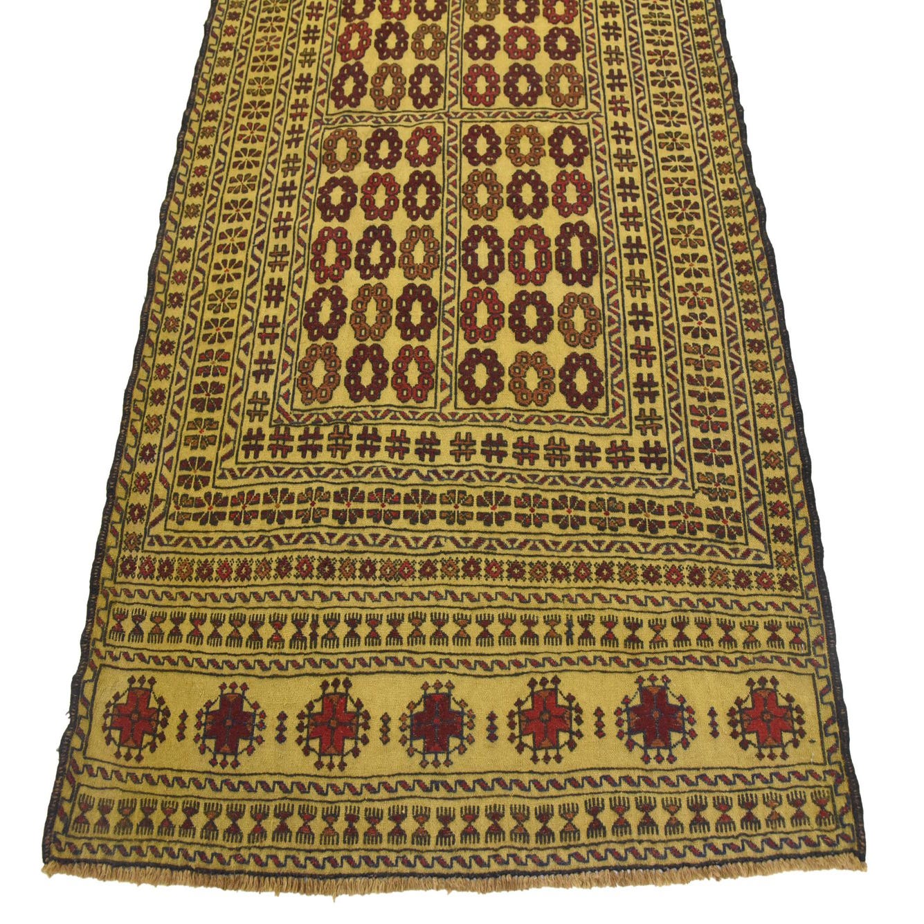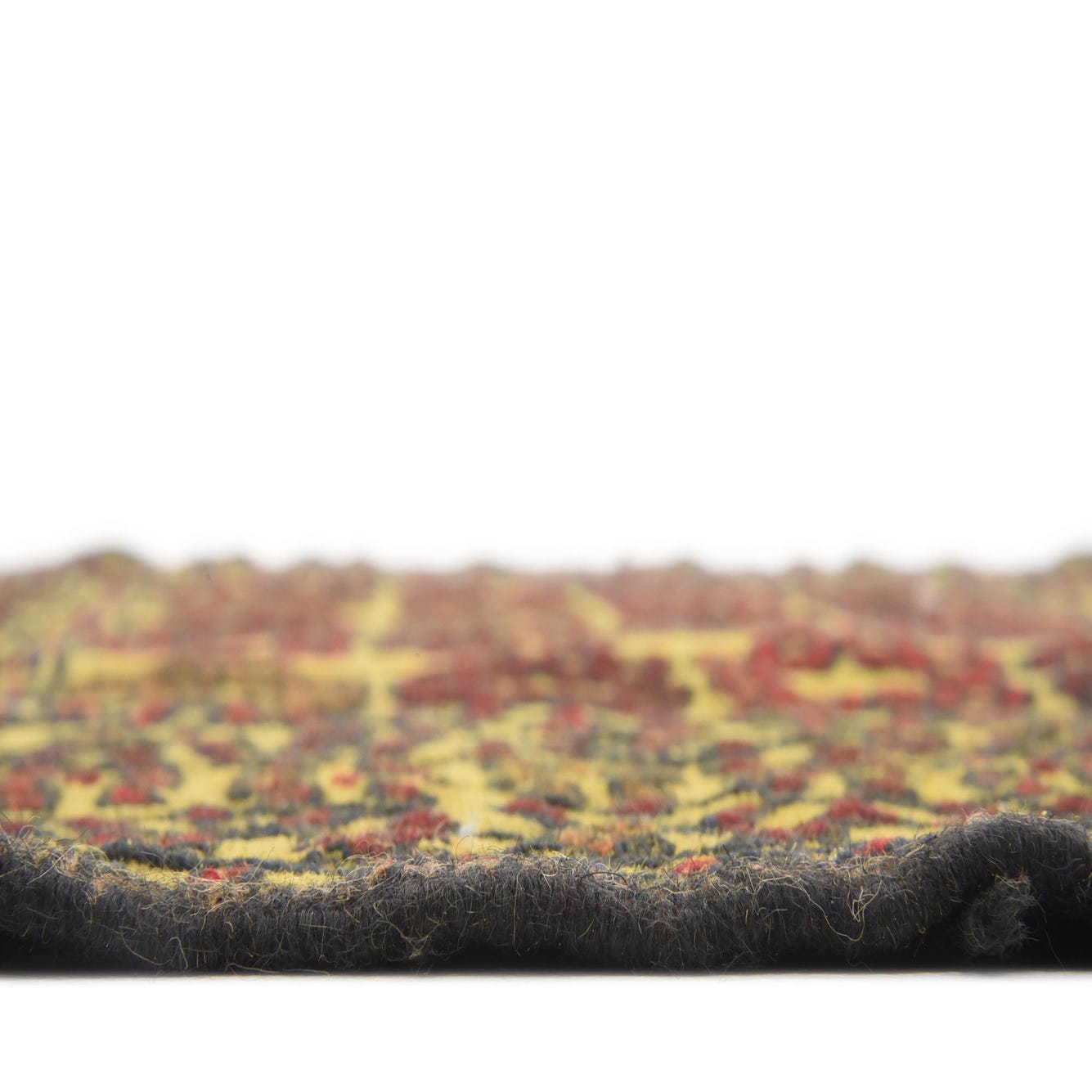 Primary color is Gold. Colors in this rug include: Gold, Burgundy, Light Brown, Red.