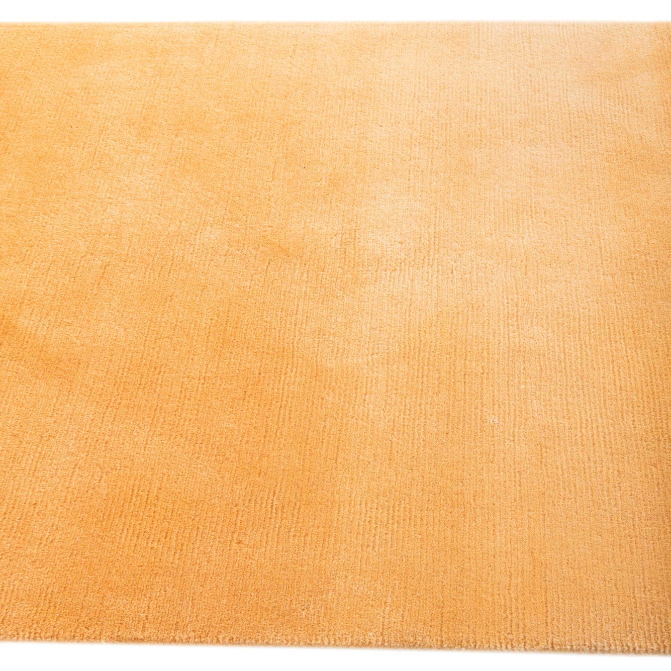 A 4x6 rectangular Nepal Collection rug in a vibrant yellow-gold, featuring two subtle raised circular patterns, perfect for a modern living room.