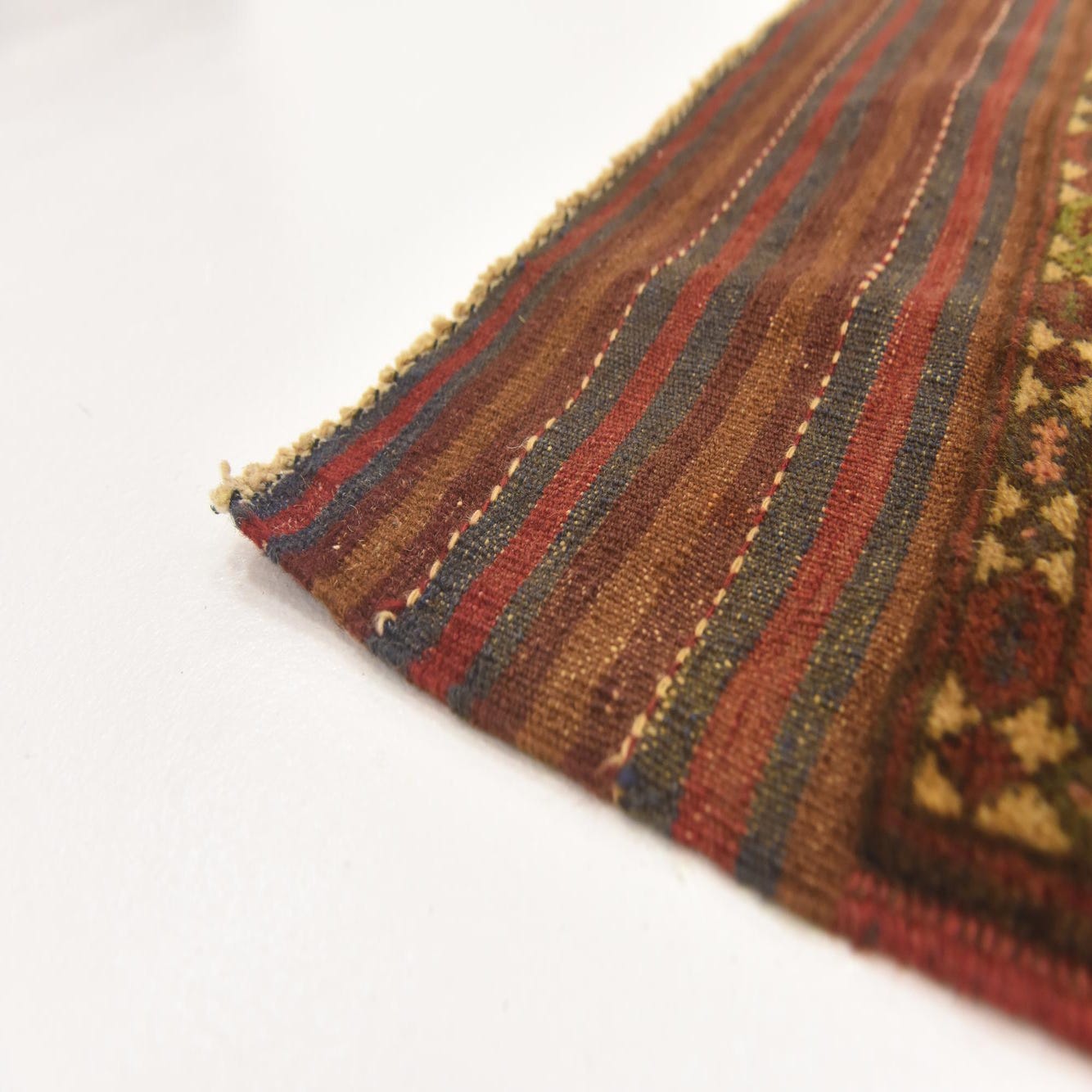 Place this piece in a foyer or small seating area to anchor a vignette, or layer it at the foot of a bed to introduce color and pattern to a bedroom. It pairs naturally with warm wood tones, worn leather seating, and matte metal accents, and can calm solid upholstery while tying together throw pillows in olive, maroon, or peach. The rug’s structured design and earthy palette make it a versatile choice for traditional, rustic, or eclectic interiors.