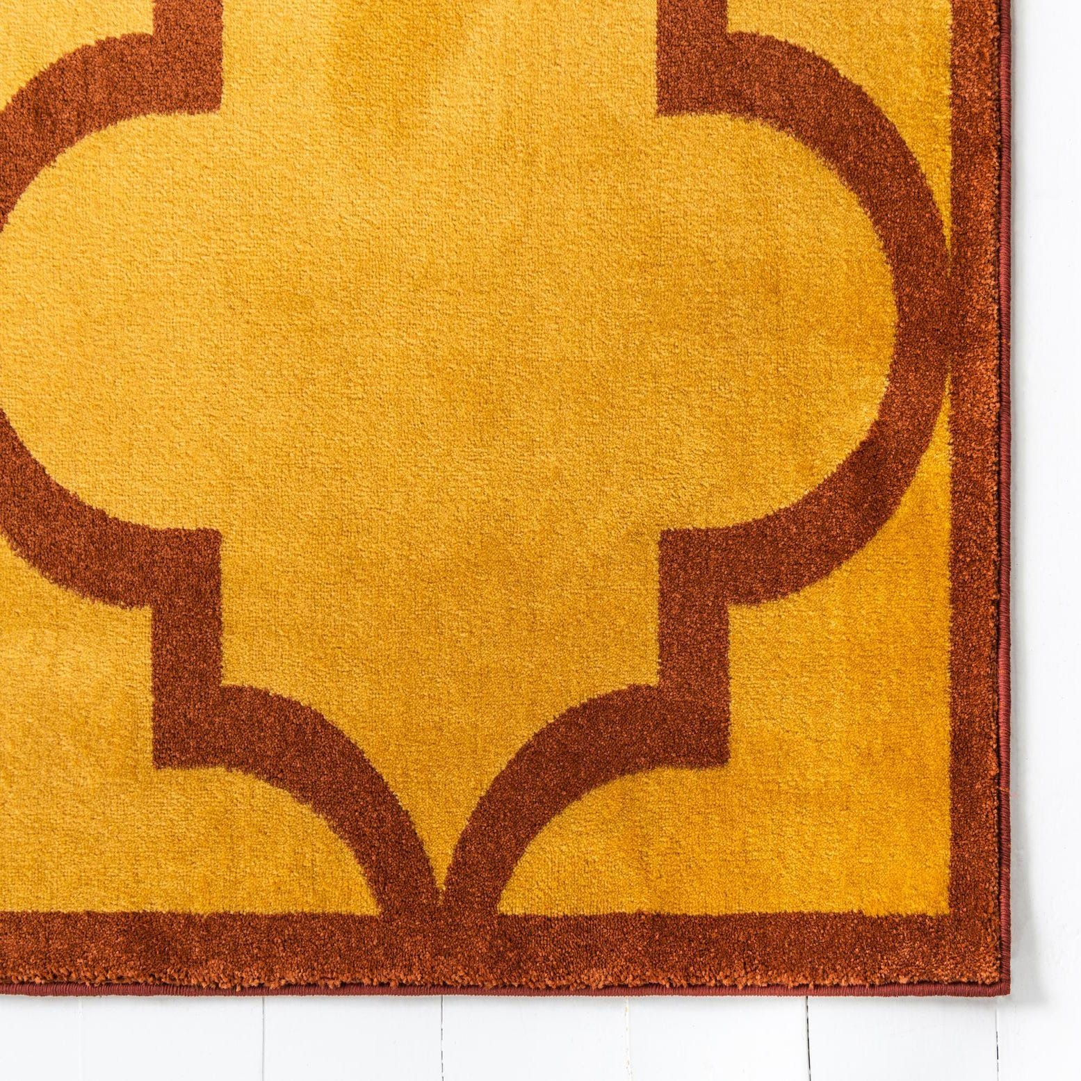 Primary color is Gold. Colors in this rug include: Gold, Terracotta.
