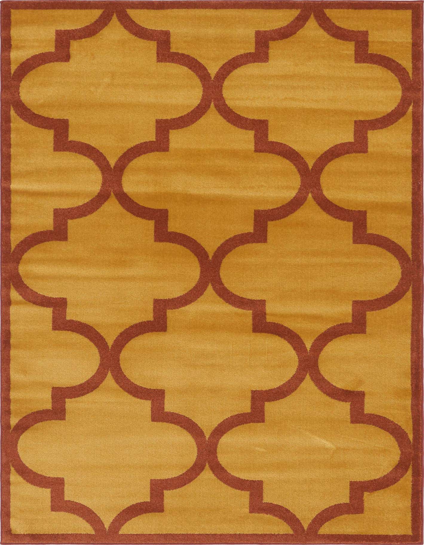 Primary color is Gold. Colors in this rug include: Gold, Terracotta.