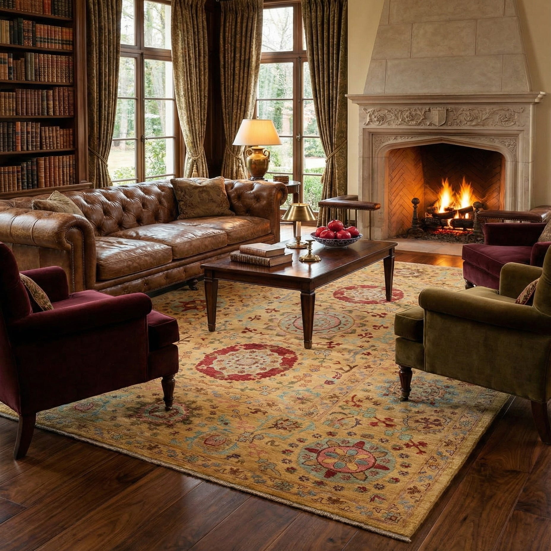 This rug would serve as an elegant anchor in spaces such as a formal living room, a refined study, or a stately dining area. It pairs well with rich wood tones, deep upholstered furniture, and a mix of antiques and contemporary pieces. The timeless design and robust construction make it amenable to high-traffic areas while maintaining a sense of luxury and charm.