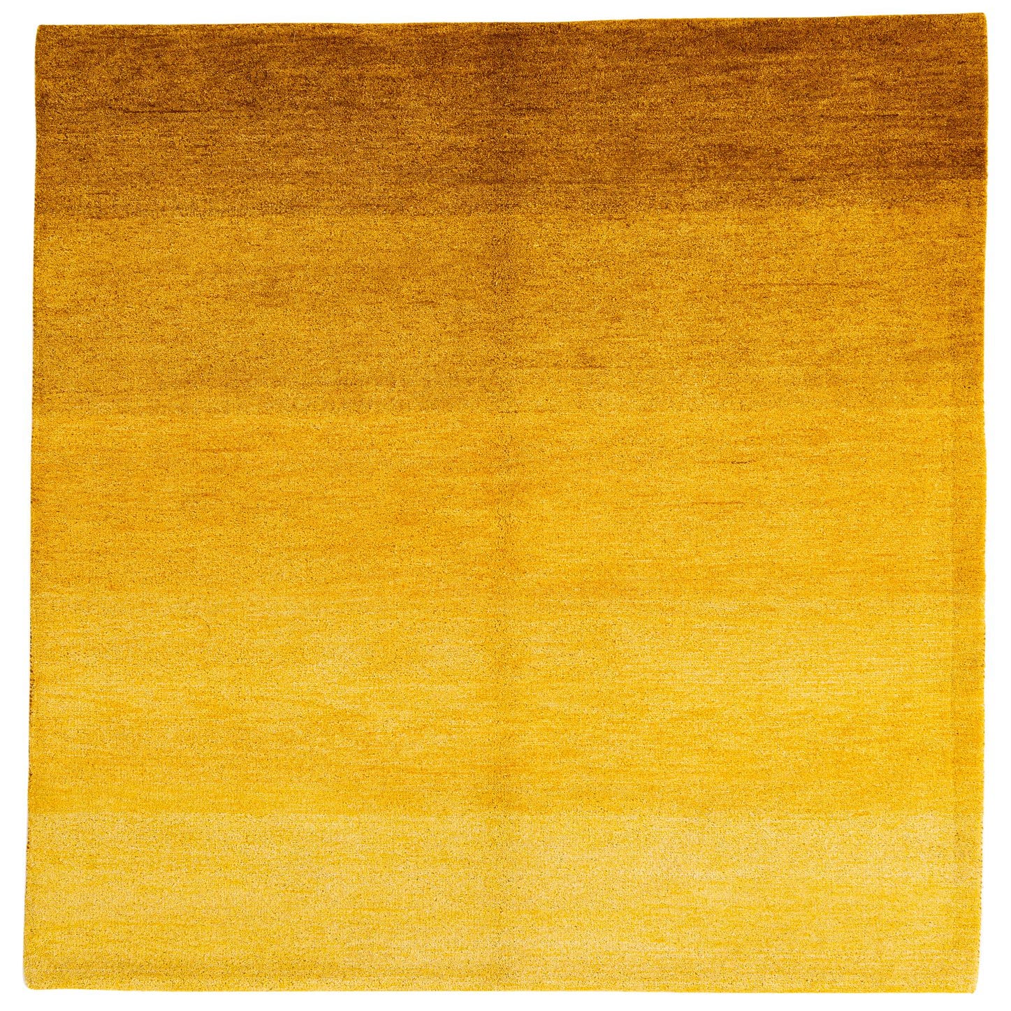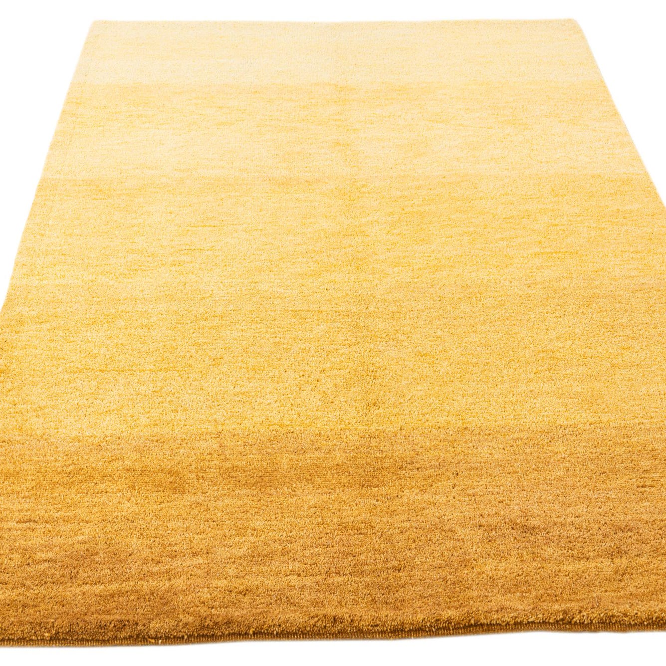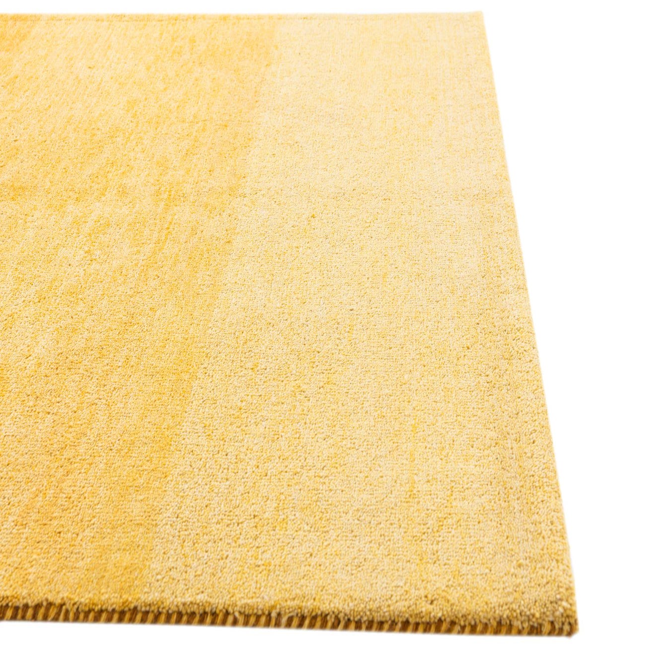 A 6x9 rectangular Kashkuli Gabbeh rug in varying shades of yellow and gold, showcasing a modern, gradient design.