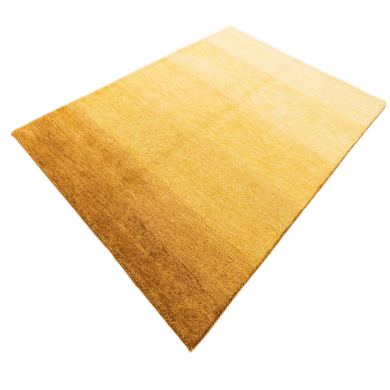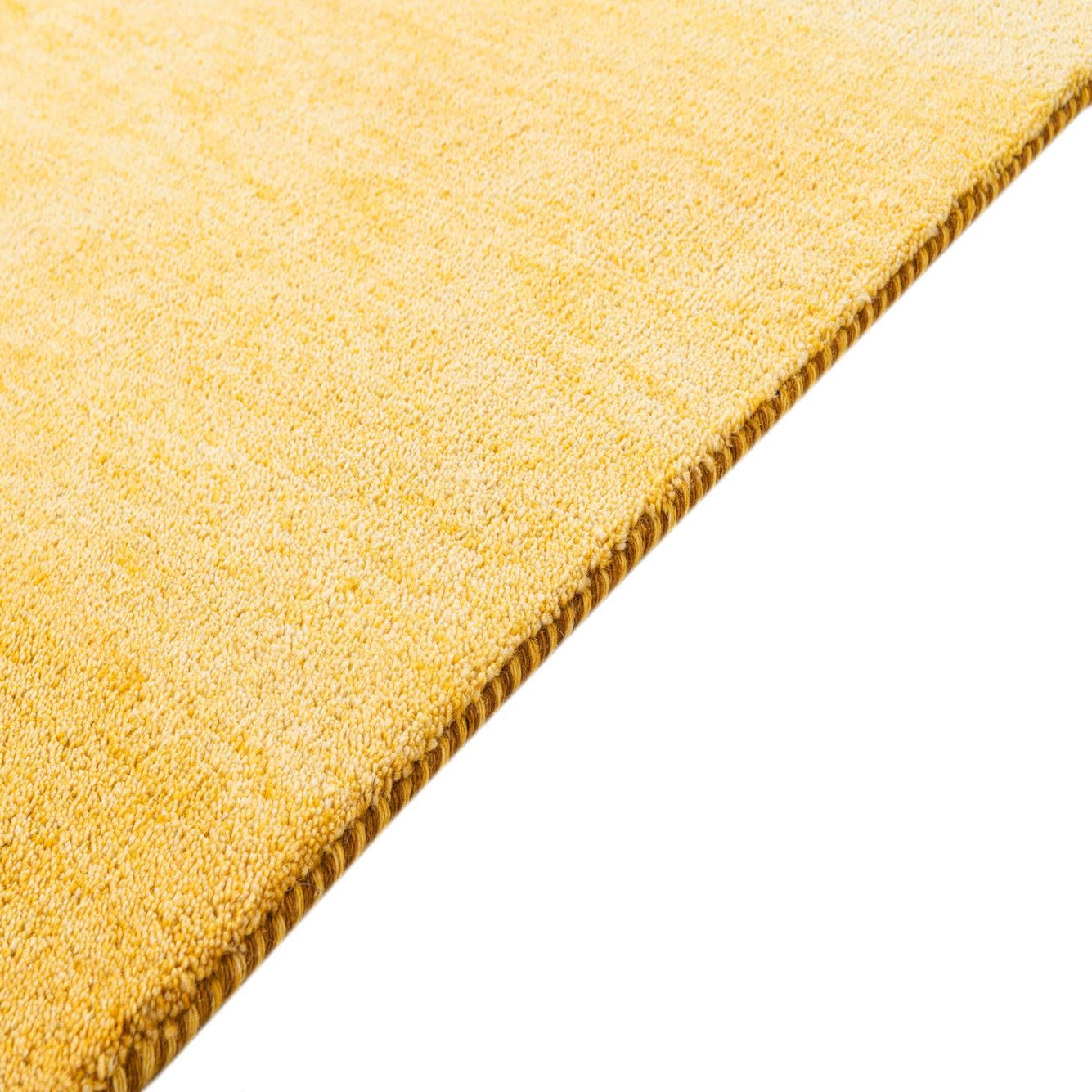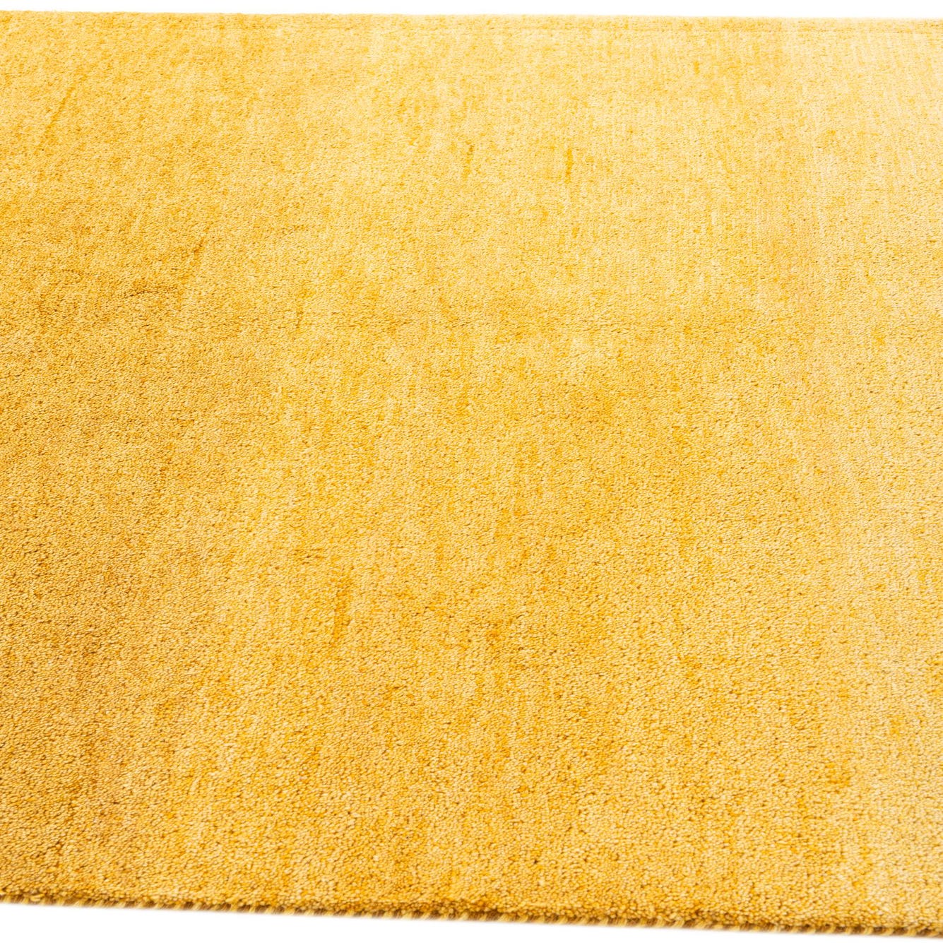 A 6x9 rectangular Kashkuli Gabbeh rug in varying shades of yellow and gold, showcasing a modern, gradient design.