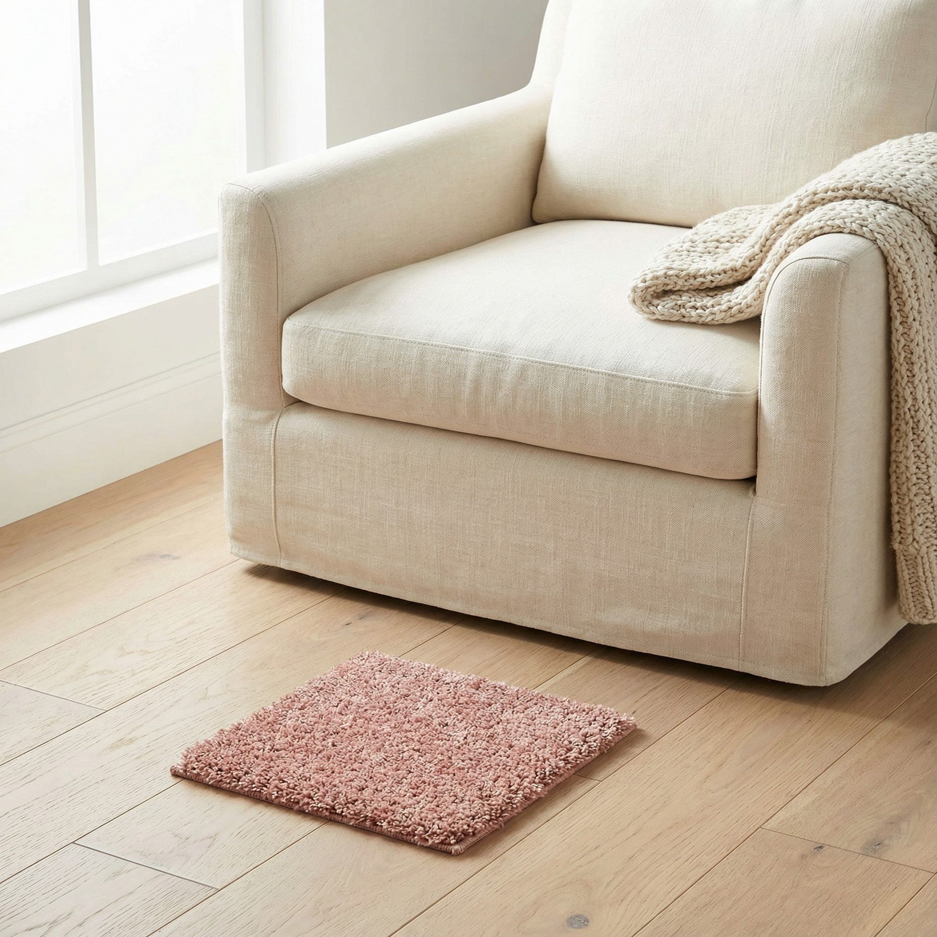 Works especially well in a bedroom or nursery where softness and a muted, feminine hue are desired; pair it with light woods, cream linens, and brass accents for a relaxed, modern look. It also anchors a cozy living room or reading nook when layered over a natural-fiber rug, and complements mid-century, Scandinavian, or contemporary interiors that benefit from a single-color statement. Machine made, 100% Polyester (Space-Dyed Yarn). This piece is a Sample.