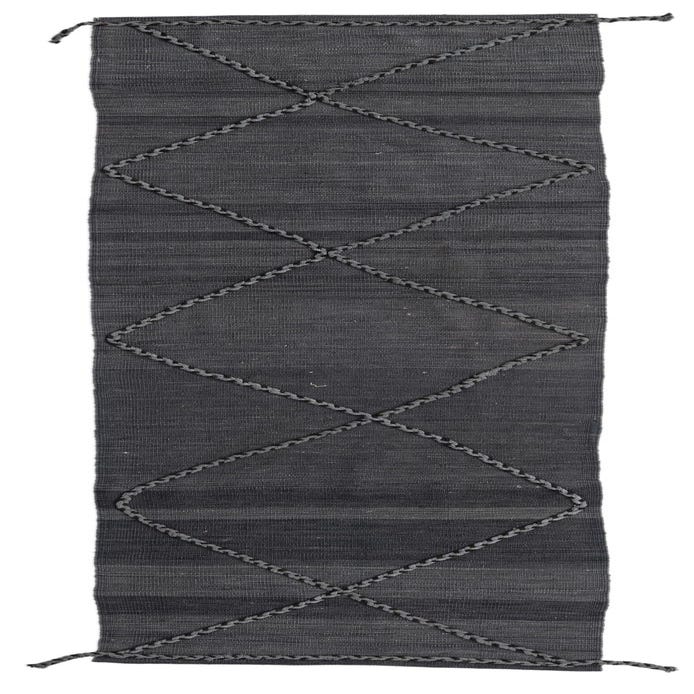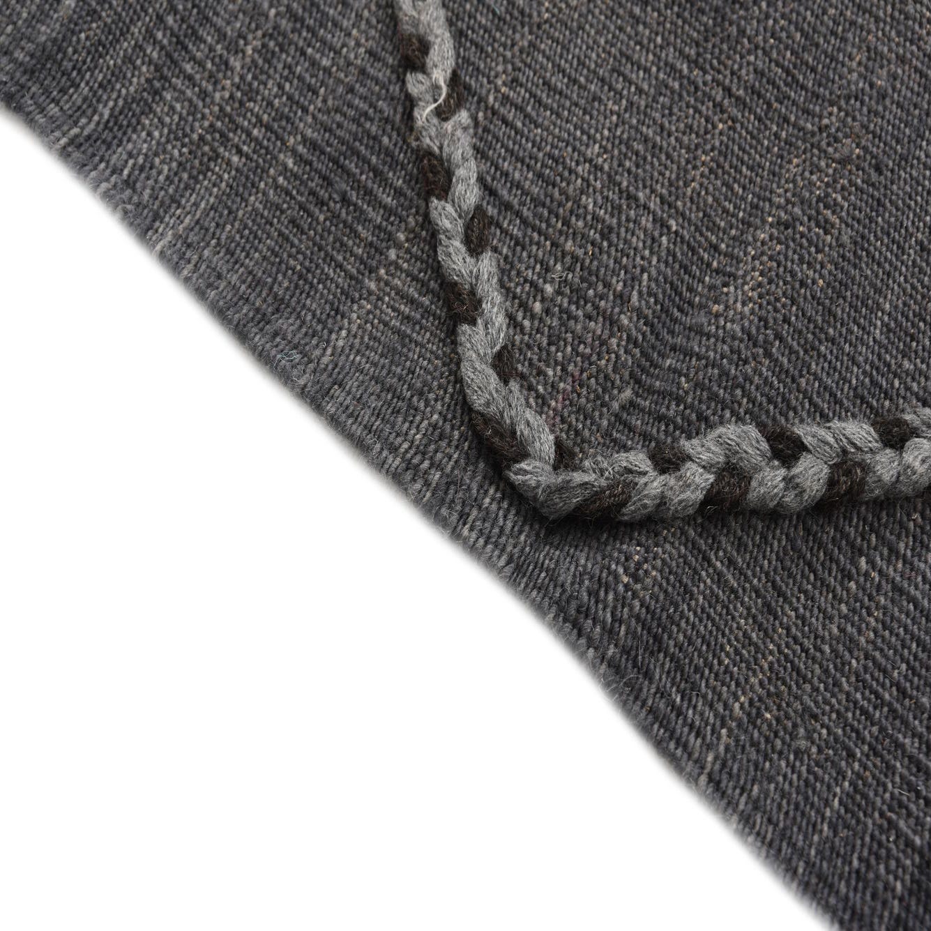 From the Kilim Modern collection, this 10-foot runner rug brings a touch of understated elegance to your space. Handwoven from 100% wool, the rug showcases a series of diamond motifs in a symmetrical pattern that creates a pleasing geometric visual. The background color of graphite gray offers a versatile and commanding palette, while the contrasting lighter stitched outlines add dimension and interest.
