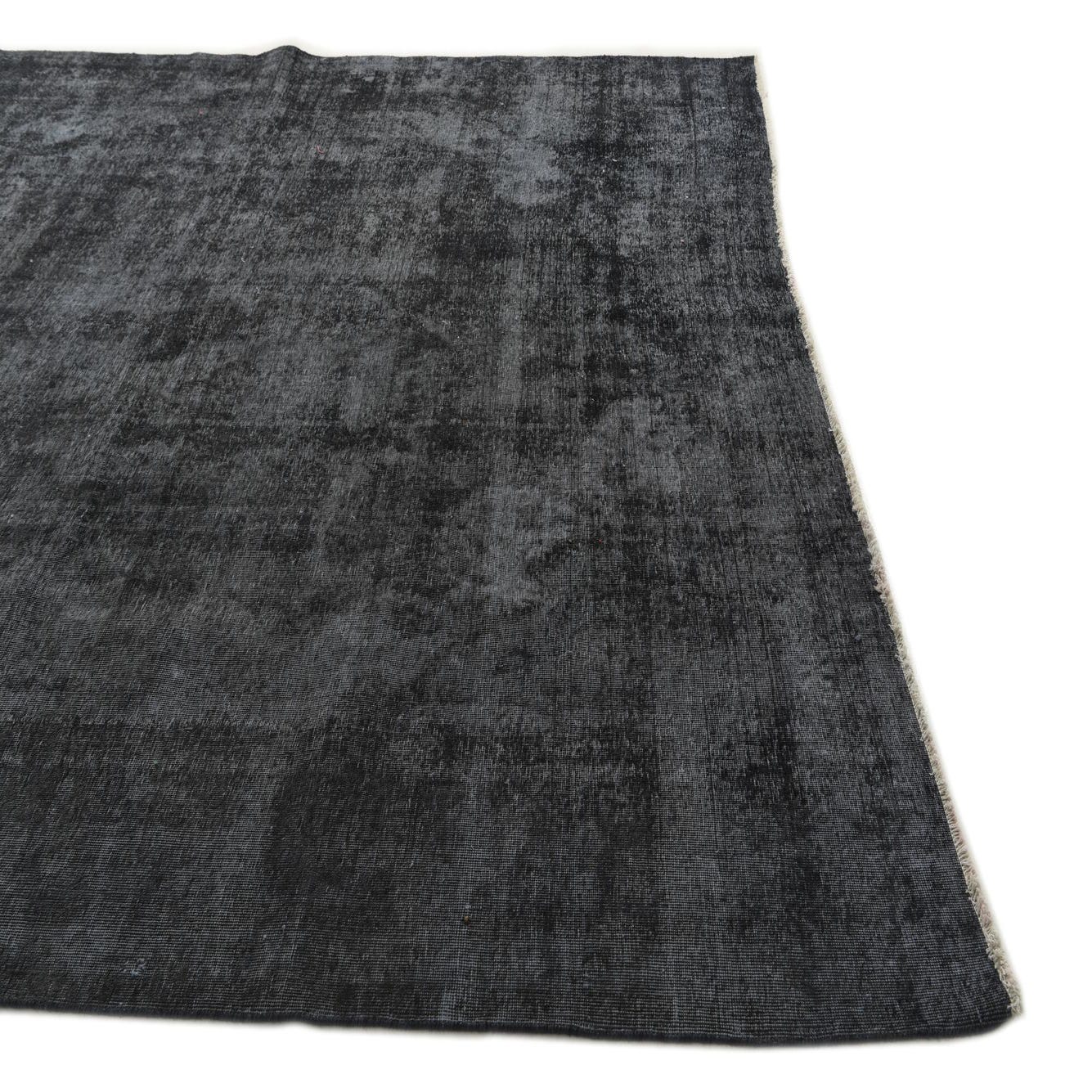 This Ultra Vintage Collection rug presents a sophisticated and timeless design, expertly hand-knotted from 100% wool to ensure lasting durability and comfort underfoot. The rug measures an ample 10x12 feet, making it a commanding piece for spacious interiors. The design features a subtle and elegant pattern that gently reveals itself across the graphite gray background, accented by nuanced black details that add depth and interest to the piece. The texture of the wool provides a soft, yet robust surface that can easily handle the demands of high-traffic areas.