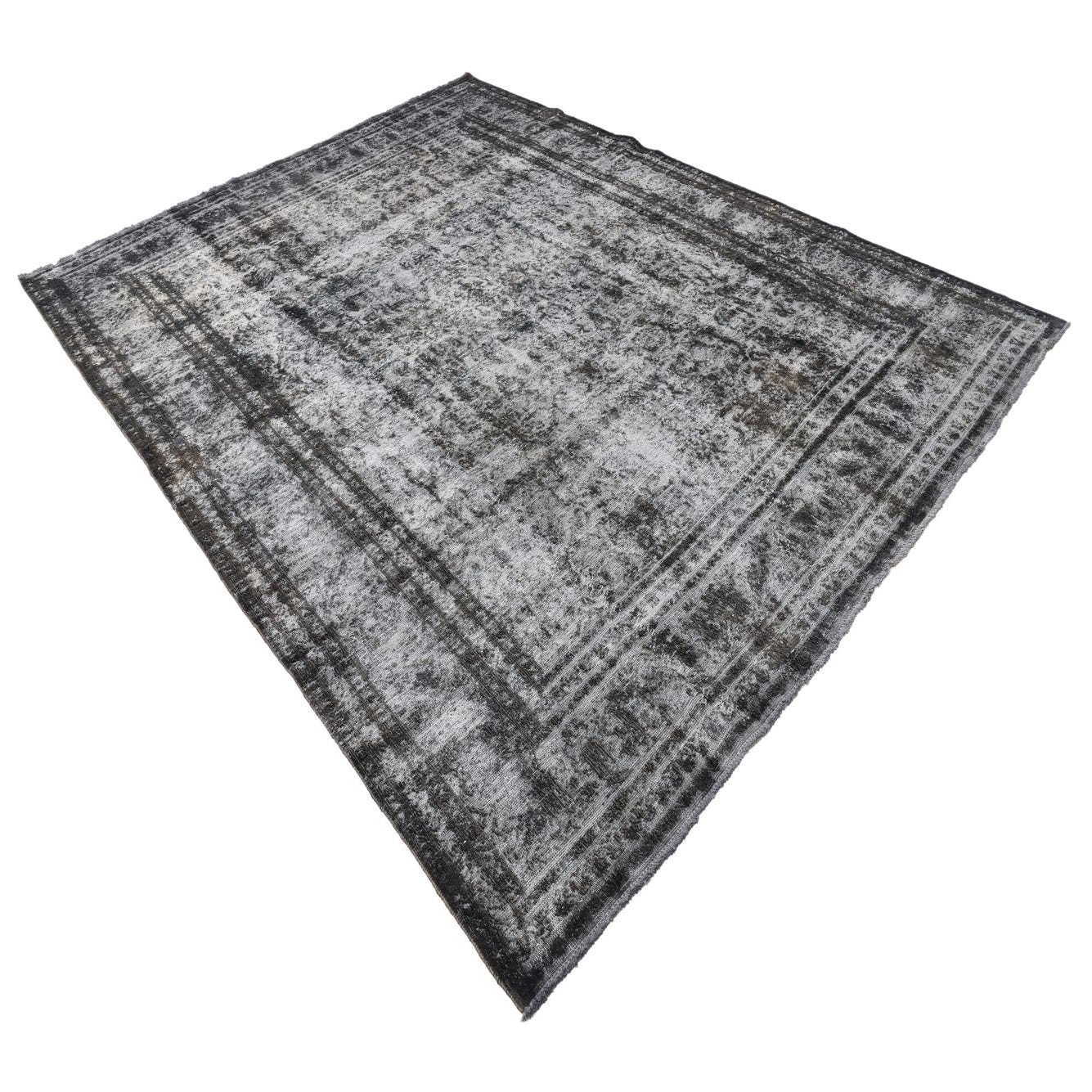 A 10x13 rectangular gray Persian-style rug with a distressed vintage medallion pattern and a dark border.