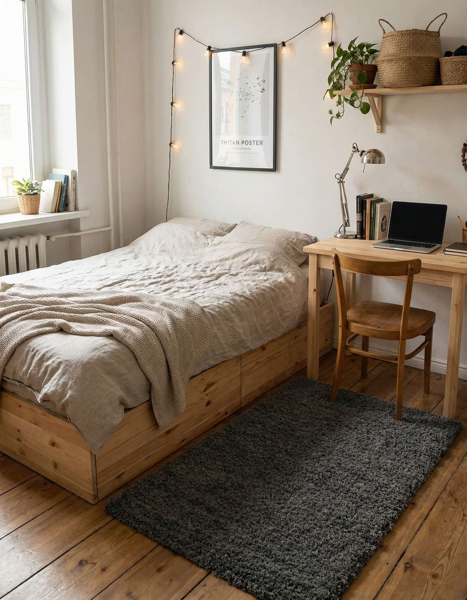 This piece works well as a small accent in front of a bedside, layered beneath a compact coffee table, or placed in a reading nook or home office to add warmth and texture. Pair it with light wood and neutral linens for a Scandinavian-inspired calm, or combine it with leather and metal accents in an industrial scheme; its graphite tone also provides a steady backdrop for richer colors and patterned textiles.