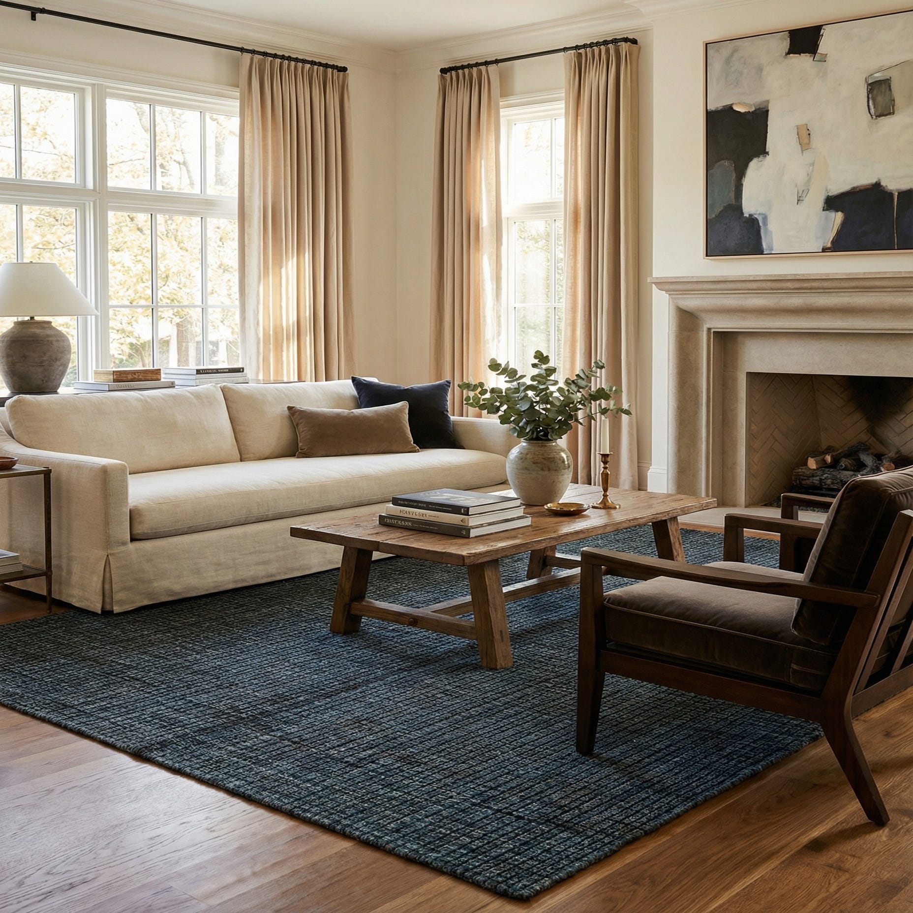 With its muted color palette, the Darya rug is versatile enough to serve as a foundation in a variety of interior settings. It would pair exceptionally well with minimalist or Scandinavian-inspired spaces, where its simple elegance can complement a clean and airy aesthetic. Moreover, the rug's timeless appeal and natural wool texture make it a suitable choice for traditional settings or to add a layer of warmth to contemporary environments.