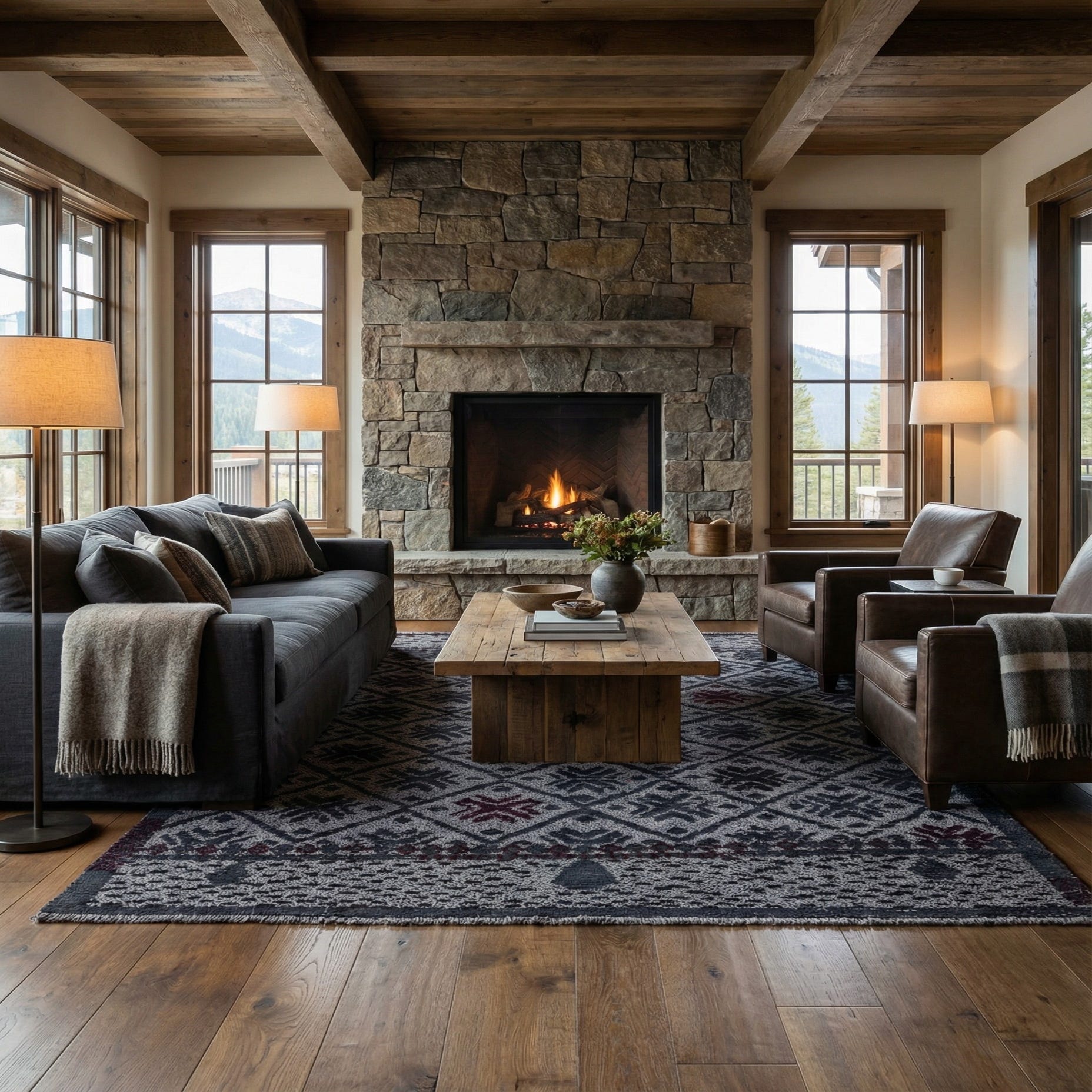 Primary color is Graphite Gray. Colors in this rug include: Graphite Gray, Burgundy, Ivory.