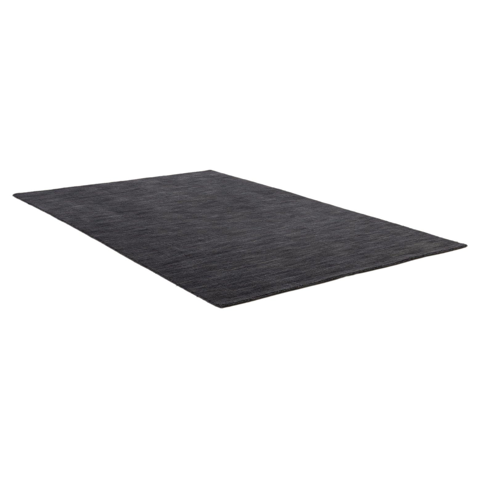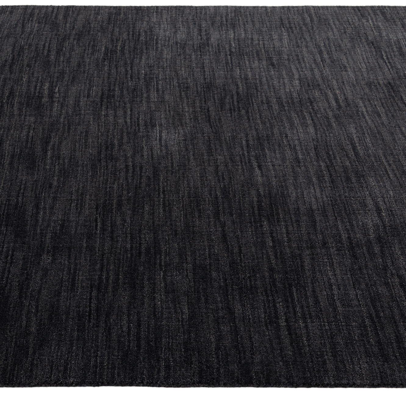 A rectangular 5x8 gray modern wool area rug with a high pile and subtle horizontal texture.