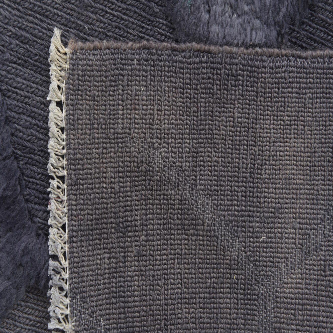 The rug's fringe adds a traditional touch to its otherwise modern aesthetic. The simplicity of the color palette, coupled with the intricate texture of the design, makes this rug a versatile choice for a range of interior styles, including contemporary, transitional, and even some traditional settings.