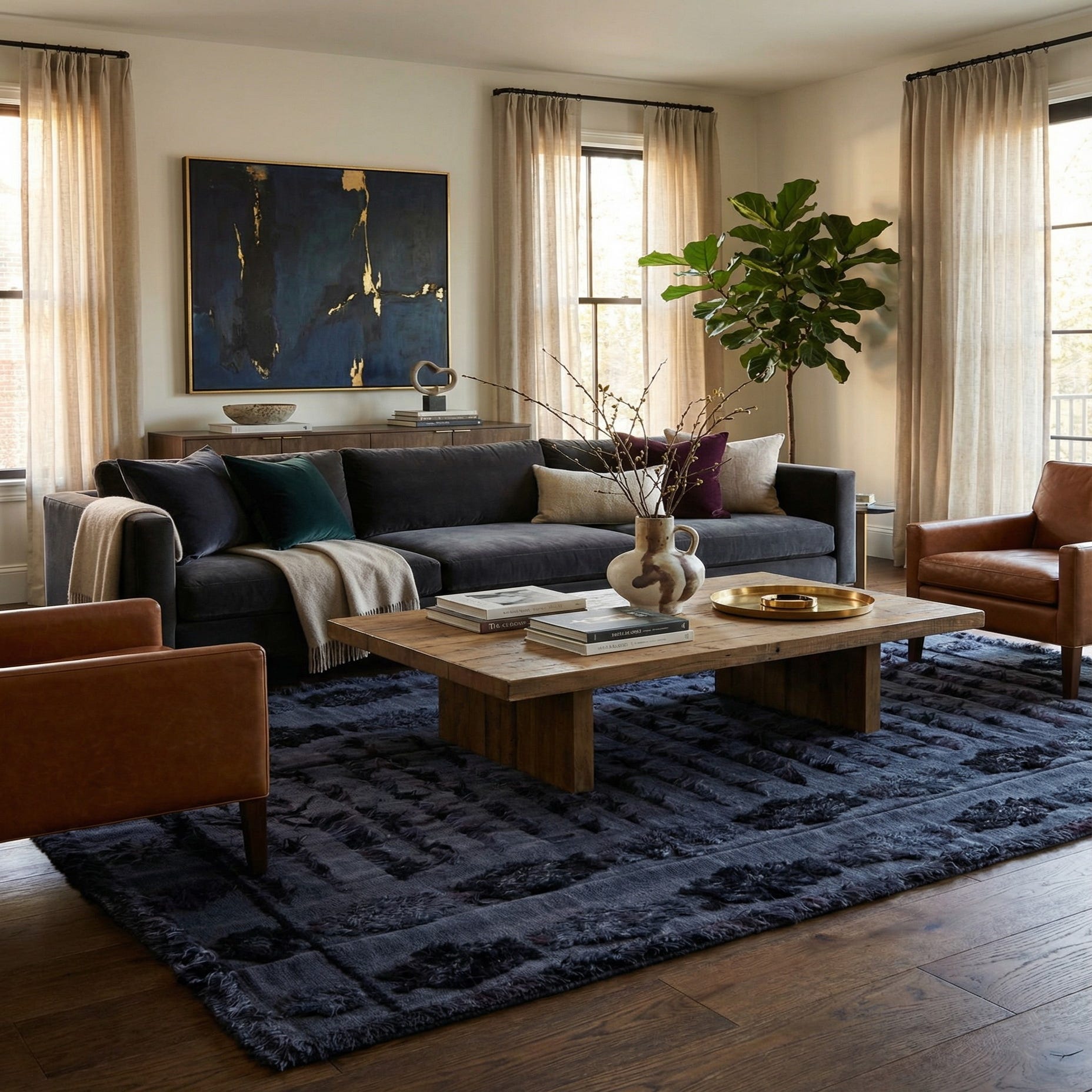 Its understated elegance would also make it a fitting choice for office spaces that require a touch of refinement without overwhelming the room's design. Ideal for interiors that draw on minimalist, modern, or transitional themes, this rug can integrate seamlessly with a range of decors, enhancing the space with its rich color scheme and compelling pattern.
