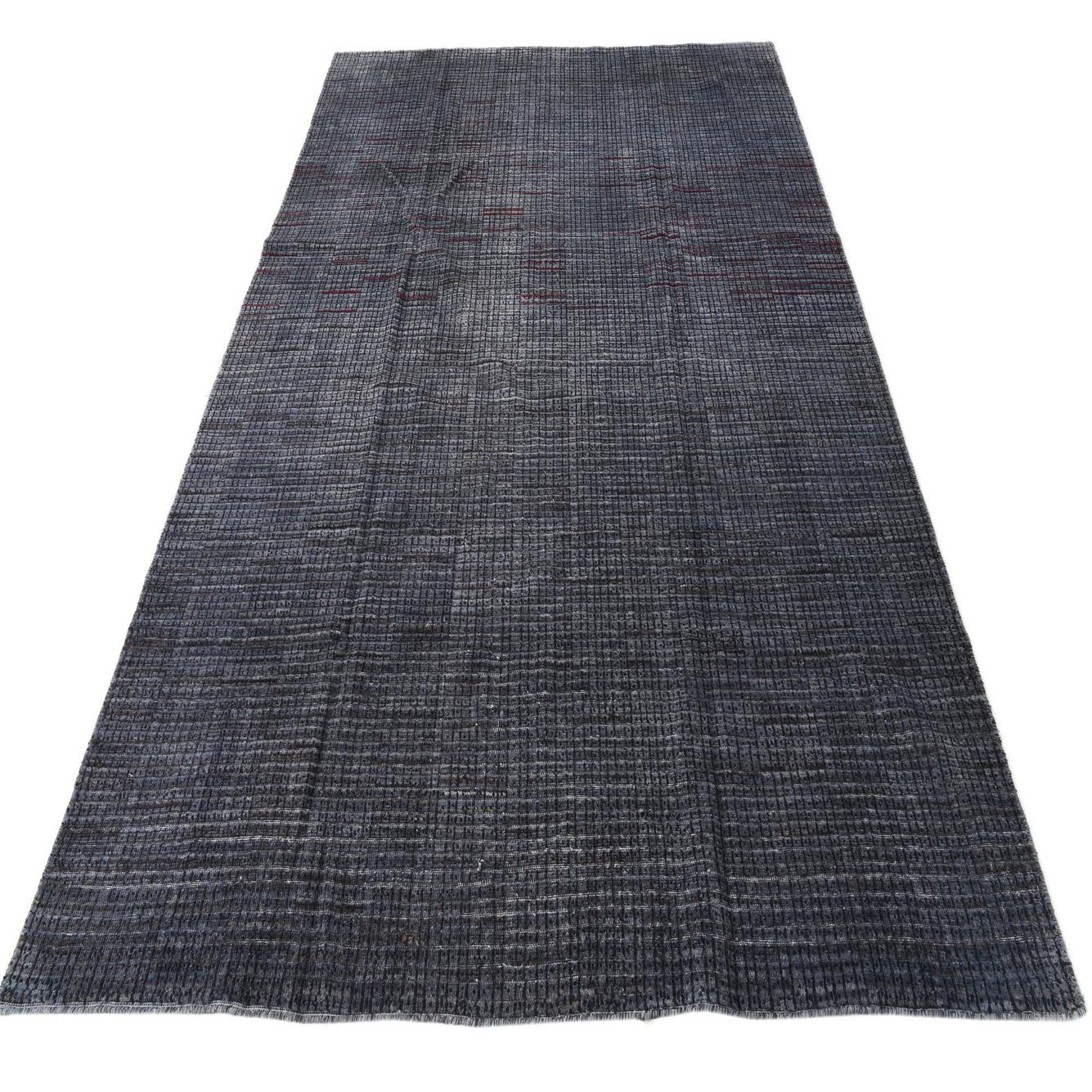 A 7x10 rectangular gray modern wool rug with a subtle textured pattern and hints of red, suitable for a living room or office.