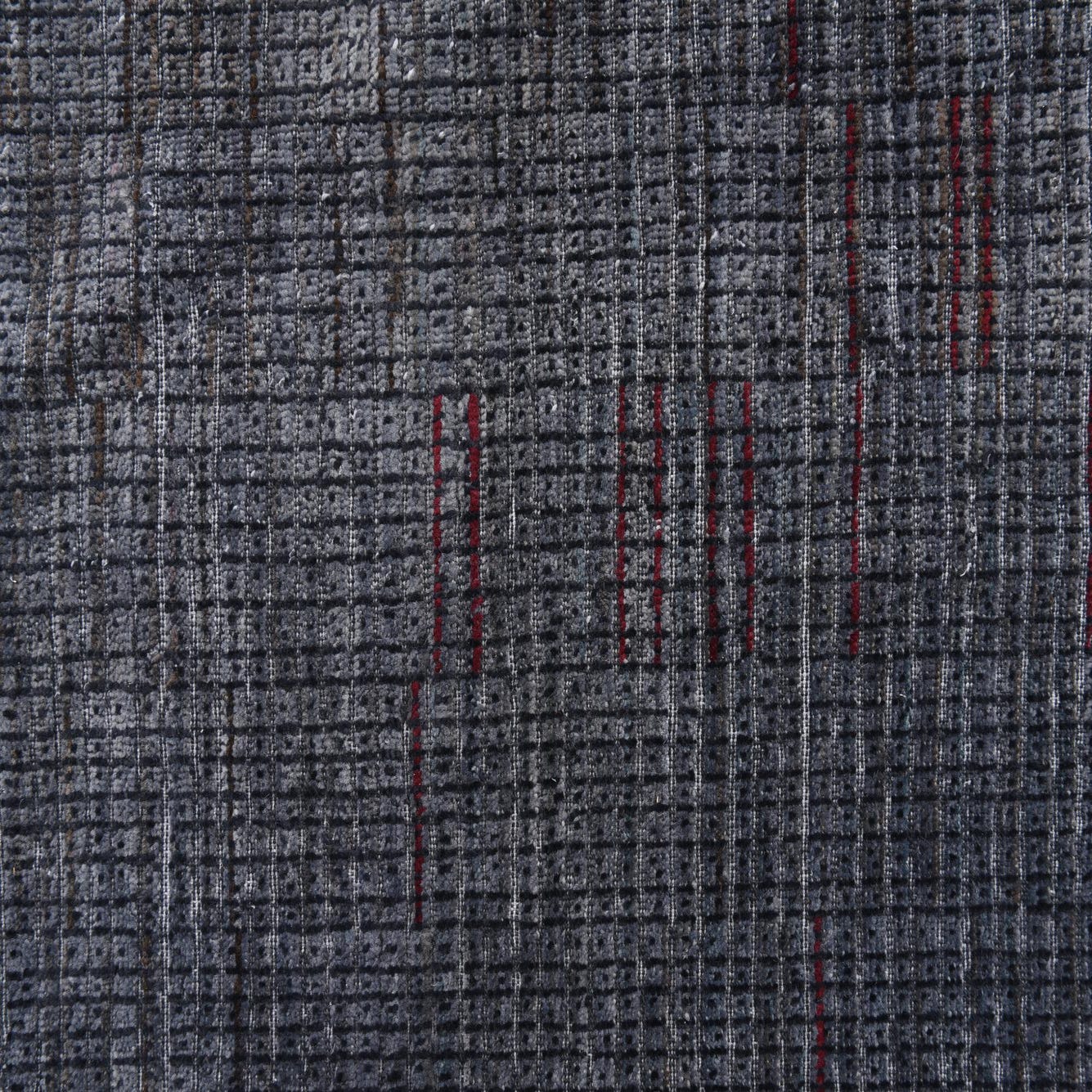 Primary color is Graphite Gray. Colors in this rug include: Graphite Gray, Burgundy.