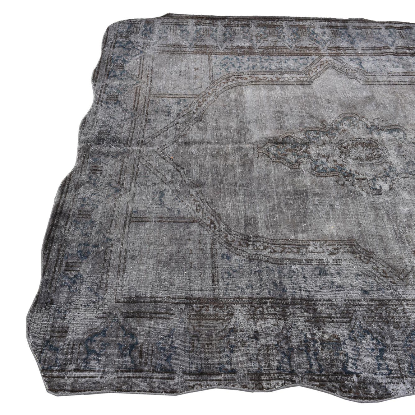 This Persian Ultra Vintage rug is an antique Persian Rug that has been washed, over-dyed, and then shaved down to a low pile. Look at the detail pictures to fully appreciate the uniqueness of this piece.