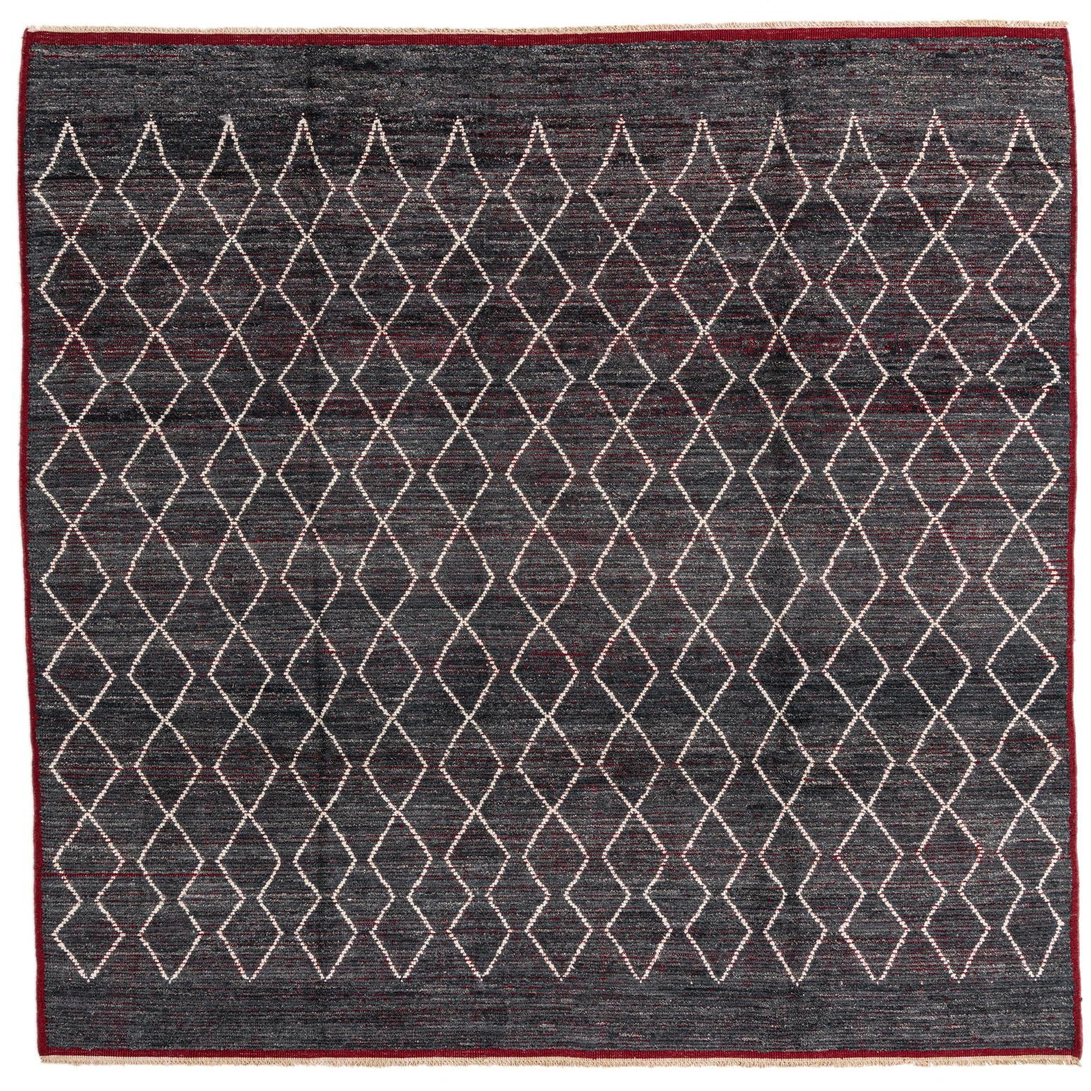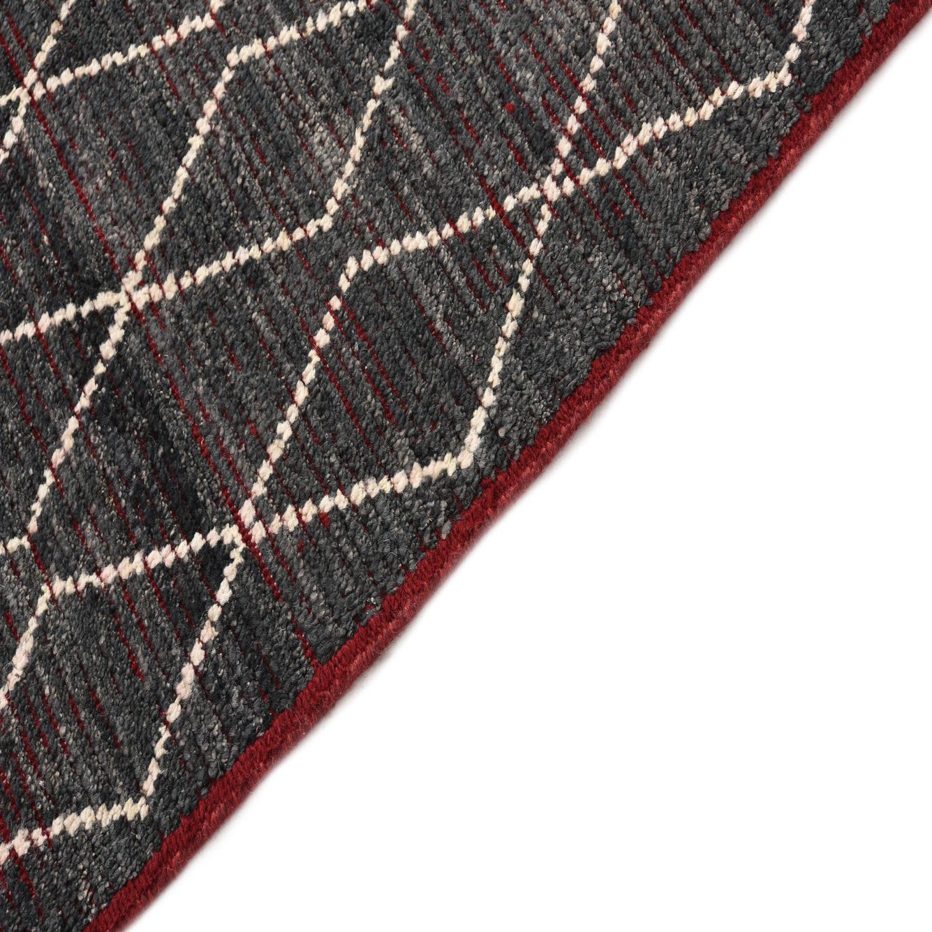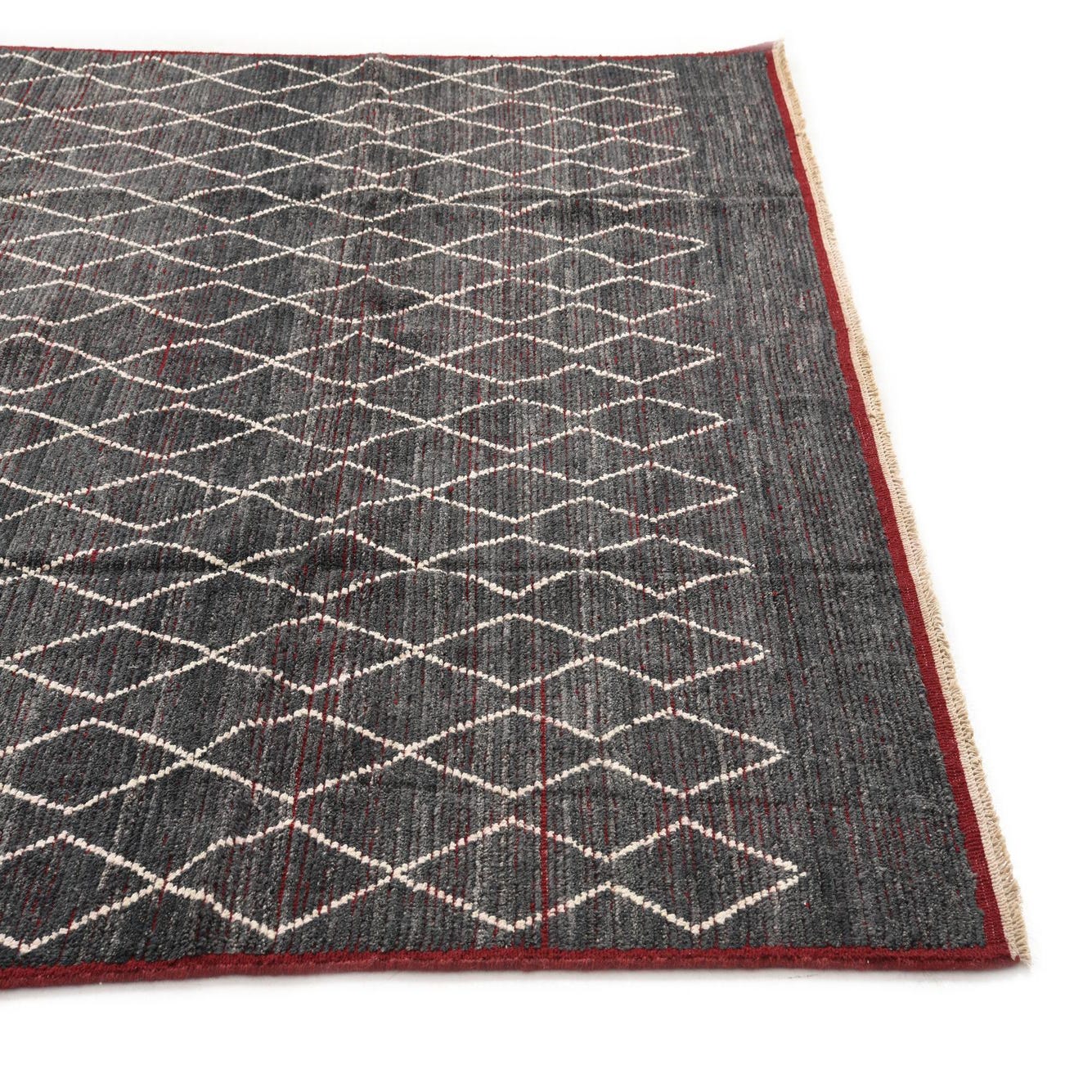 The Moroccan collection rug presents a sophisticated design woven with a luxurious texture. The hand-knotted construction of 100% wool imparts a substantial feel, ensuring both durability and comfort underfoot. This 8x11 rug features a modern geometric diamond pattern that is both engaging and stylish, overlaid upon a rich Graphite Gray background that provides a versatile base for a plethora of interior design themes.