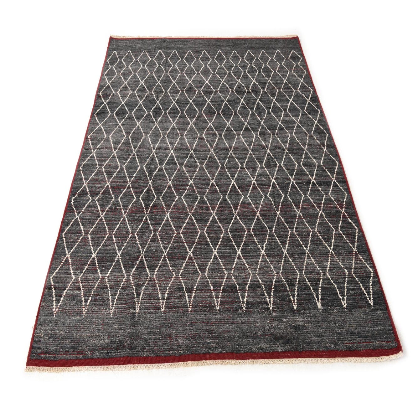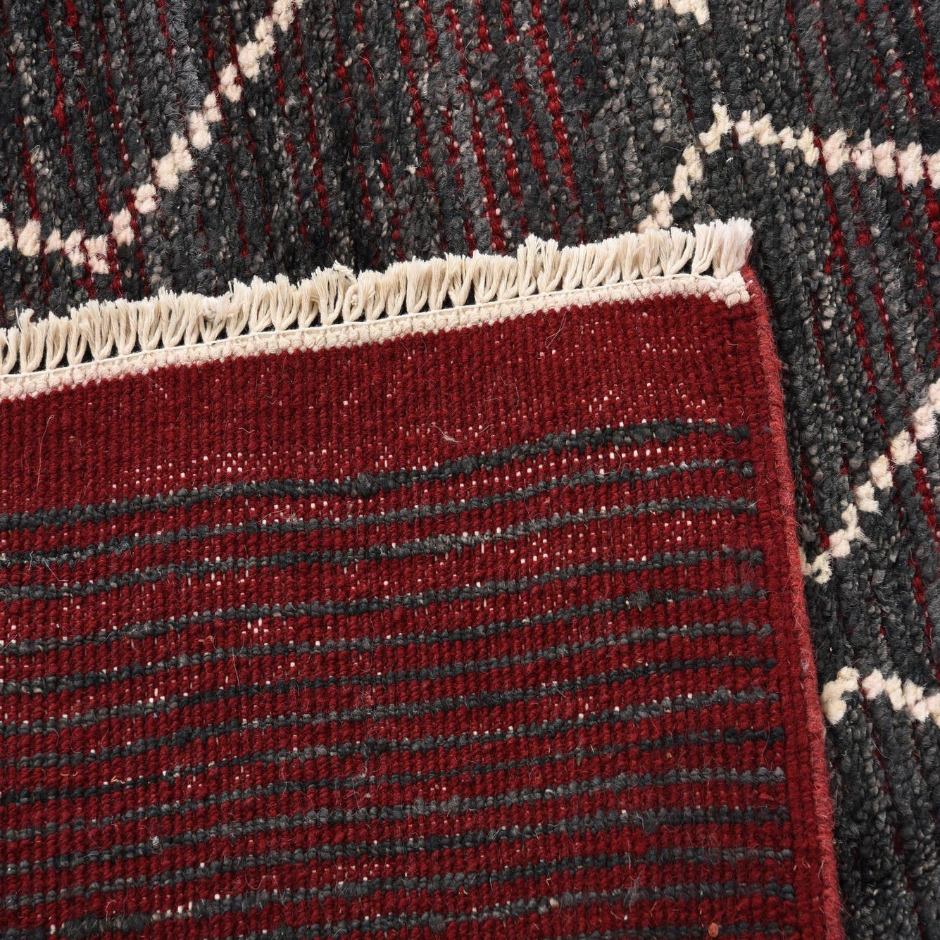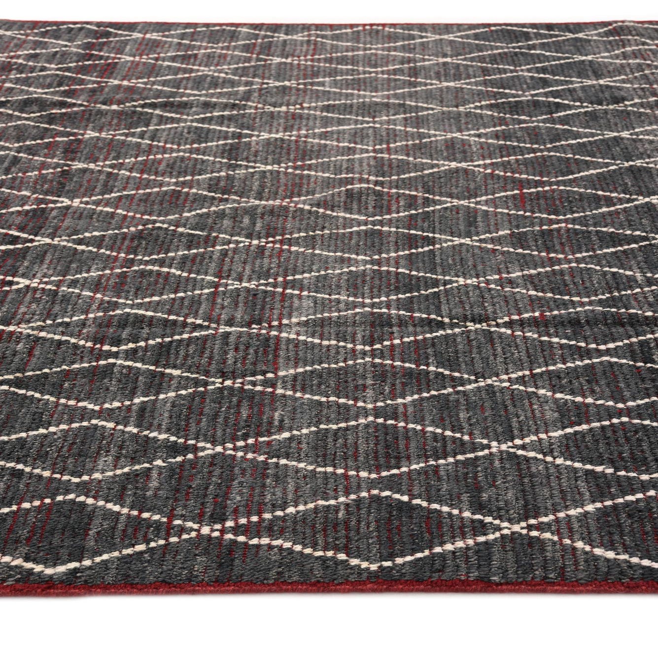The Moroccan collection rug presents a sophisticated design woven with a luxurious texture. The hand-knotted construction of 100% wool imparts a substantial feel, ensuring both durability and comfort underfoot. This 8x11 rug features a modern geometric diamond pattern that is both engaging and stylish, overlaid upon a rich Graphite Gray background that provides a versatile base for a plethora of interior design themes.