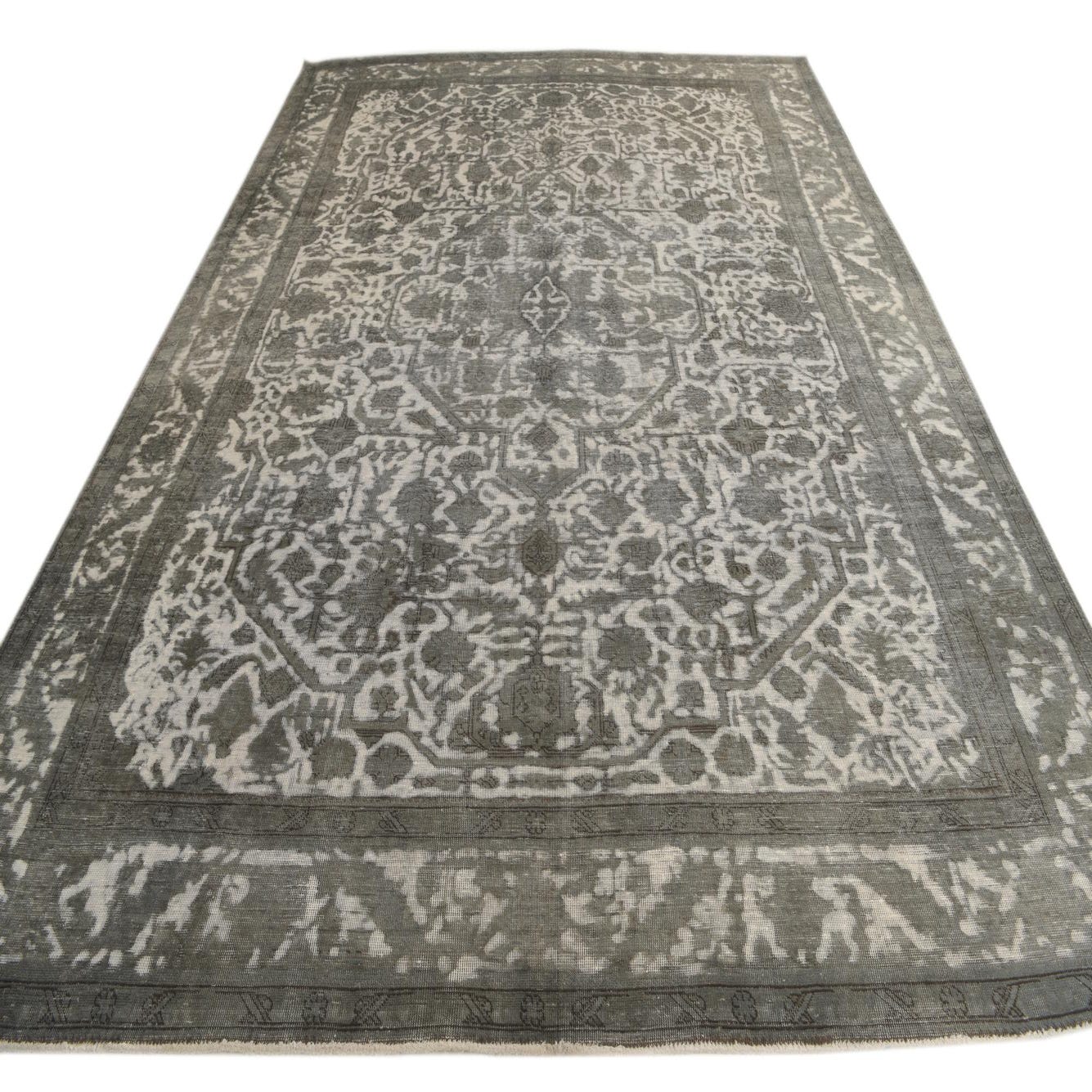 This Persian Ultra Vintage rug is an antique Persian Rug that has been washed, over-dyed, and then shaved down to a low pile. Look at the detail pictures to fully appreciate the uniqueness of this piece.