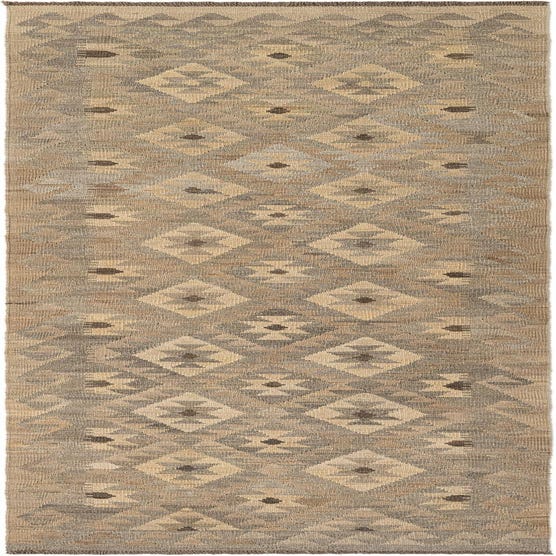 Primary color is Gray. Colors in this rug include: Gray, Brown, Cream.
