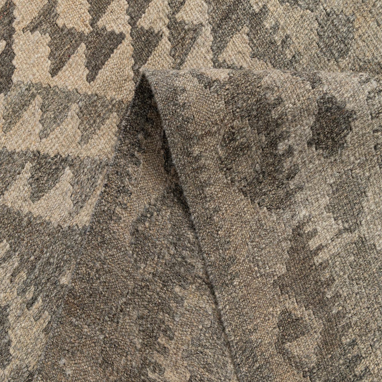 Primary color is Gray. Colors in this rug include: Gray, Cream, Brown.