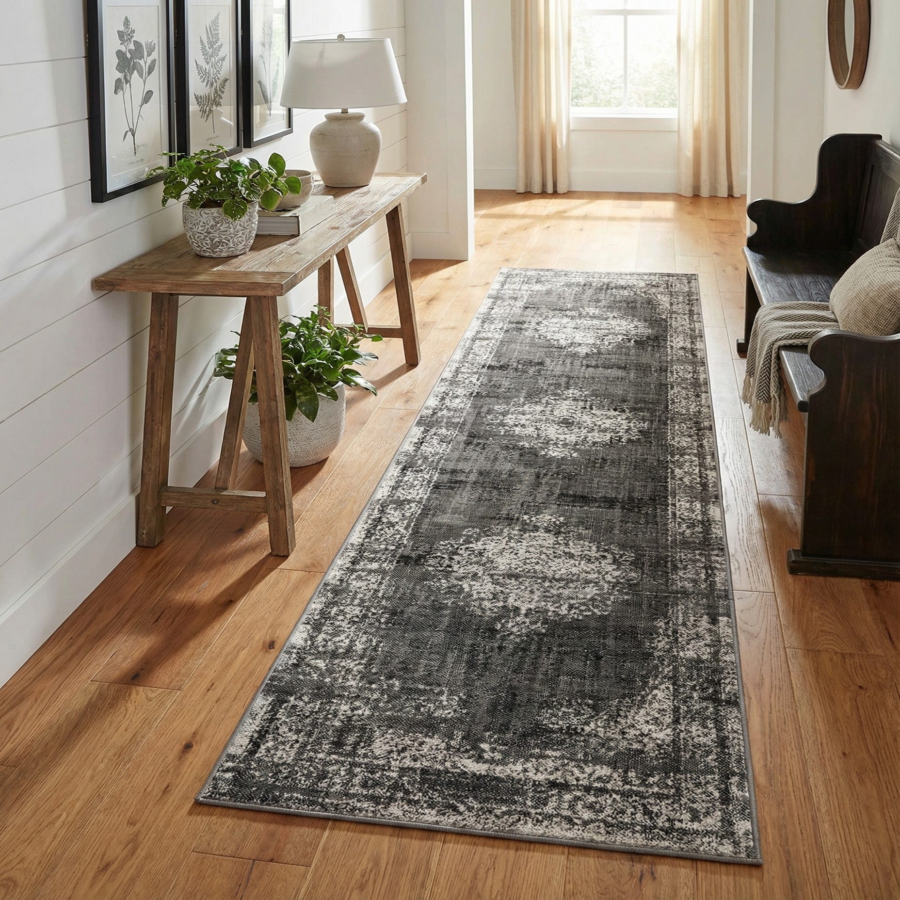This runner is designed to provide a modern aesthetic with visual depth, making it suitable for a variety of interior design scenarios. Its sophisticated color scheme pairs well with minimalist or industrial decors, while the abstract pattern can add interest to a modern or transitional hallway. Given its ability to resist stains and its shed-free properties, this runner is a practical choice for high-traffic areas such as entryways or corridors.