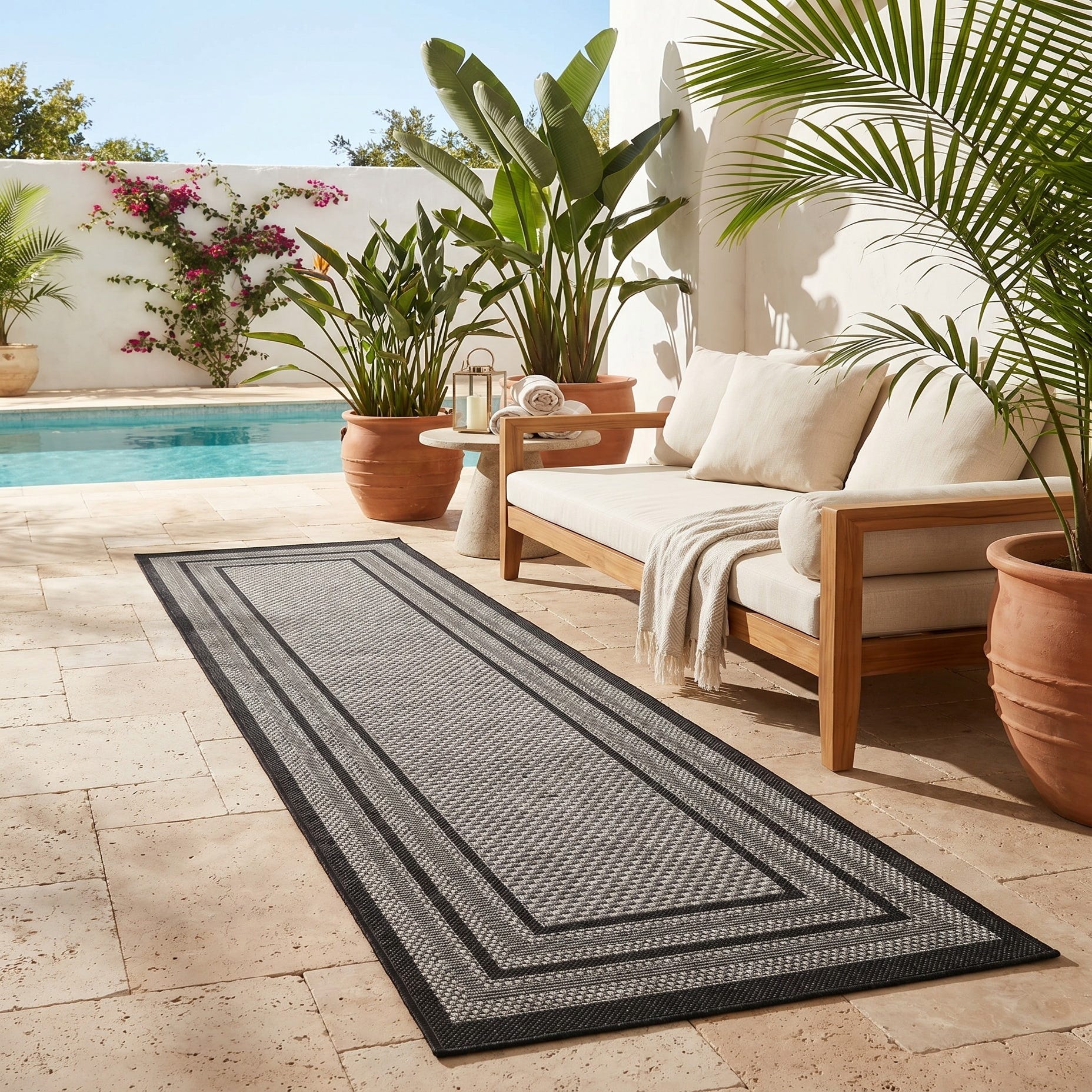 2' 7 x 10' Easy-Clean Border Indoor / Outdoor Runner Rug