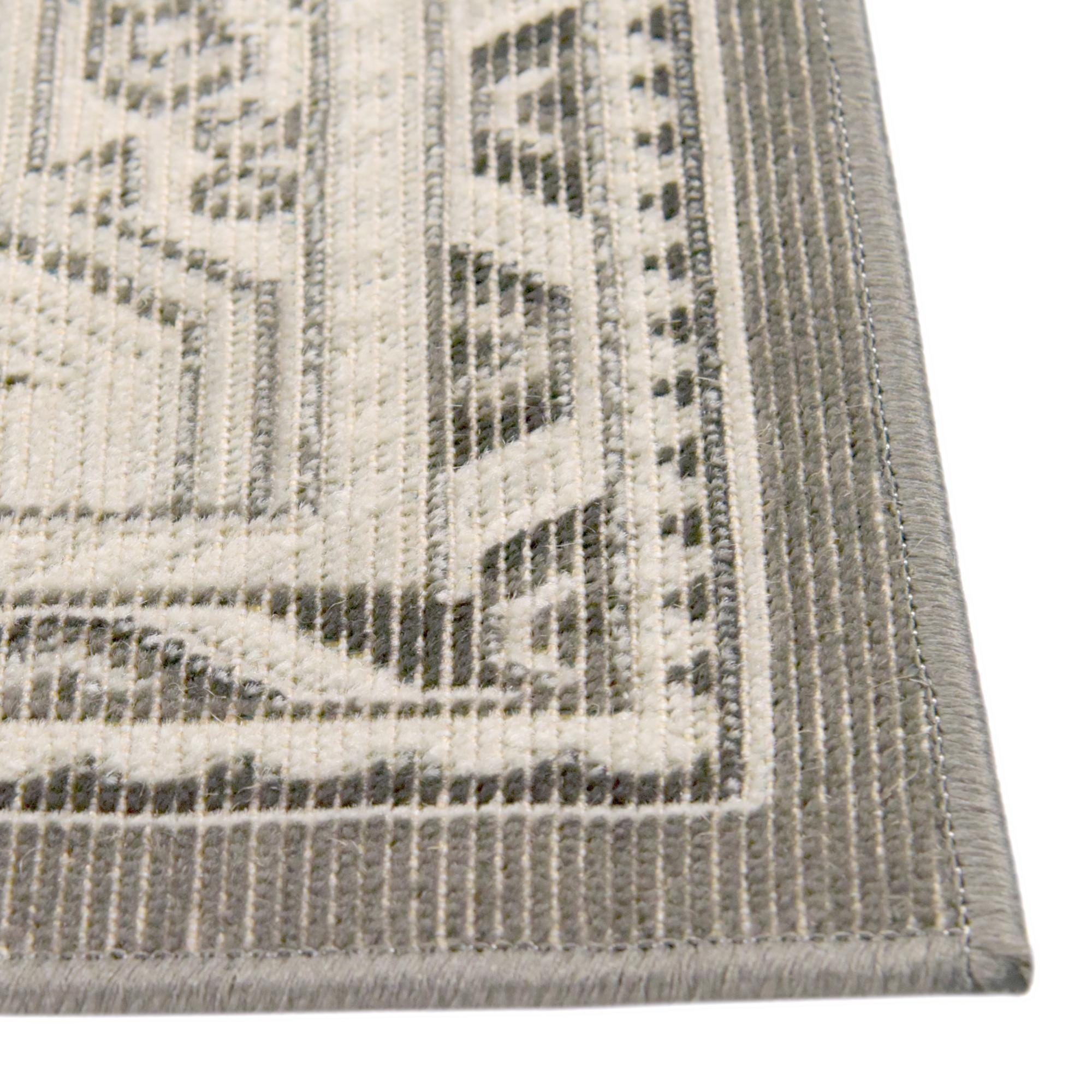 Machine-made of 100% polypropylene, the rug has a low, tightly woven pile that feels smooth underfoot with a faintly ribbed surface where the pattern registers. Its gray, black and ivory palette makes it versatile for narrow spaces: place it in a hallway or entry, run it along a kitchen aisle, or layer it beside a bed. It pairs especially well with light wood or painted floors, monochrome or muted textiles, and interiors leaning toward modern farmhouse, Scandinavian minimalism, or urban-contemporary schemes.