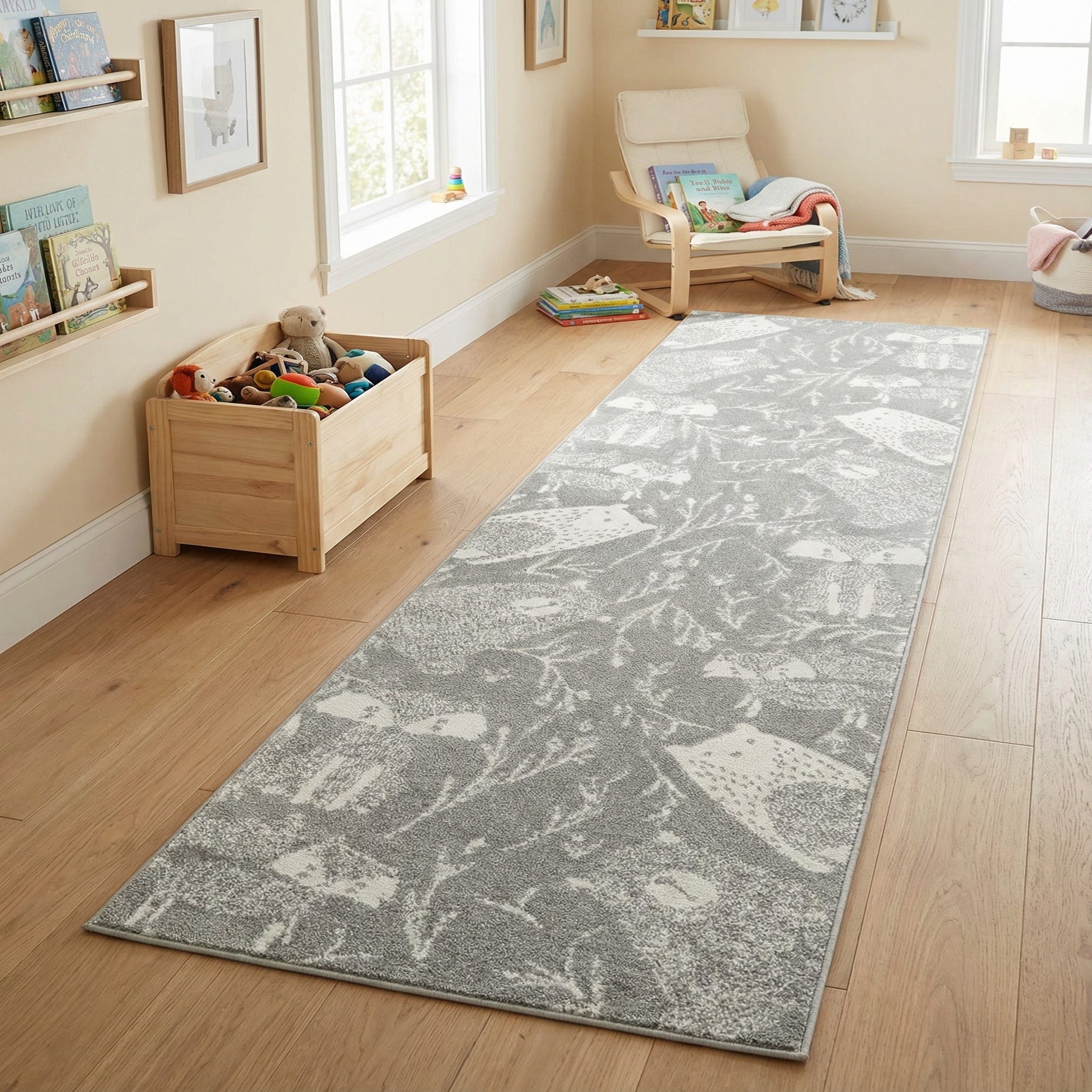 Primary color is Gray. Colors in this rug include: Gray, Ivory.