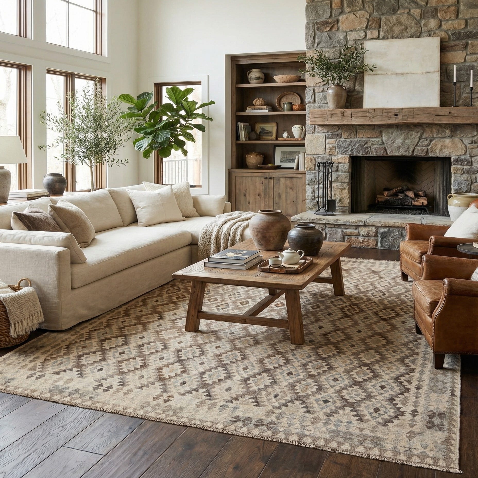 Primary color is Gray. Colors in this rug include: Gray, Beige, Brown.