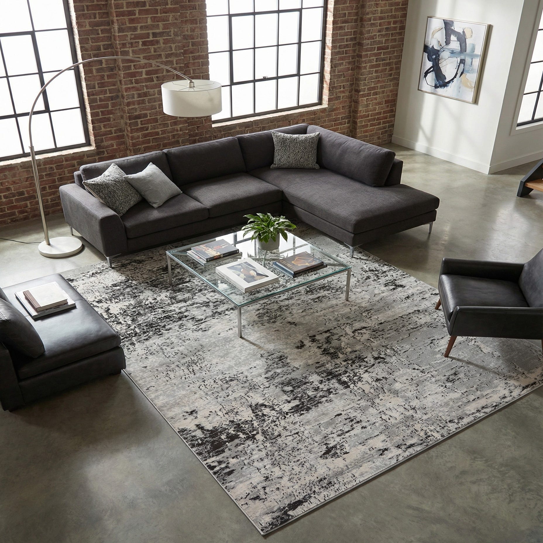 Works well in a contemporary living room to anchor a seating area, in an open-plan dining space beneath a table, or layered under a bed for a calming bedroom foundation. Pair it with cool-toned furnishings, simple metallic accents, or warm wood pieces to balance the neutral palette and bring subtle texture into the room.
