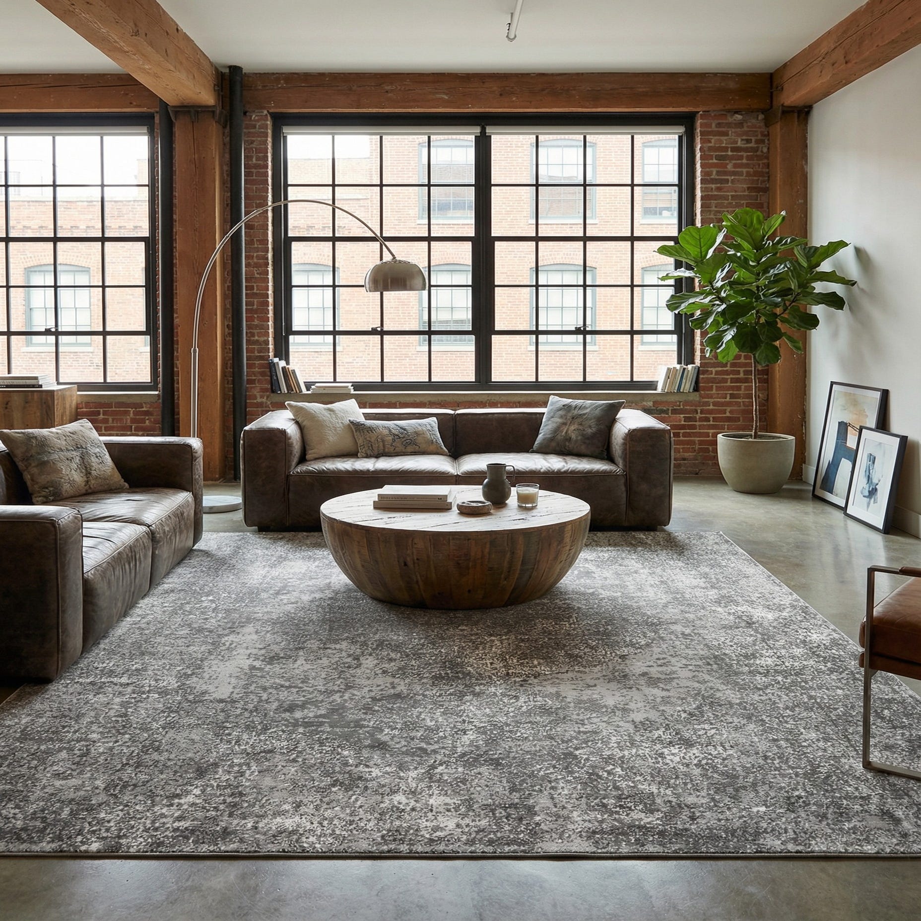 Machine-made from 85% polypropylene and 15% polyester, the rug has a low, dense pile that sits close to the floor and offers a gentle, slightly plush hand. The neutral gray and ivory palette makes it a versatile anchor — place it beneath a seating group in a contemporary living room, under a dining table in a minimalist space, or as a grounding layer in a bedroom or home office. It pairs well with cool-toned furnishings, metal and glass accents, and both Scandinavian and industrial-inspired interiors, offering a calm backdrop for layered textures and bold furniture pieces.