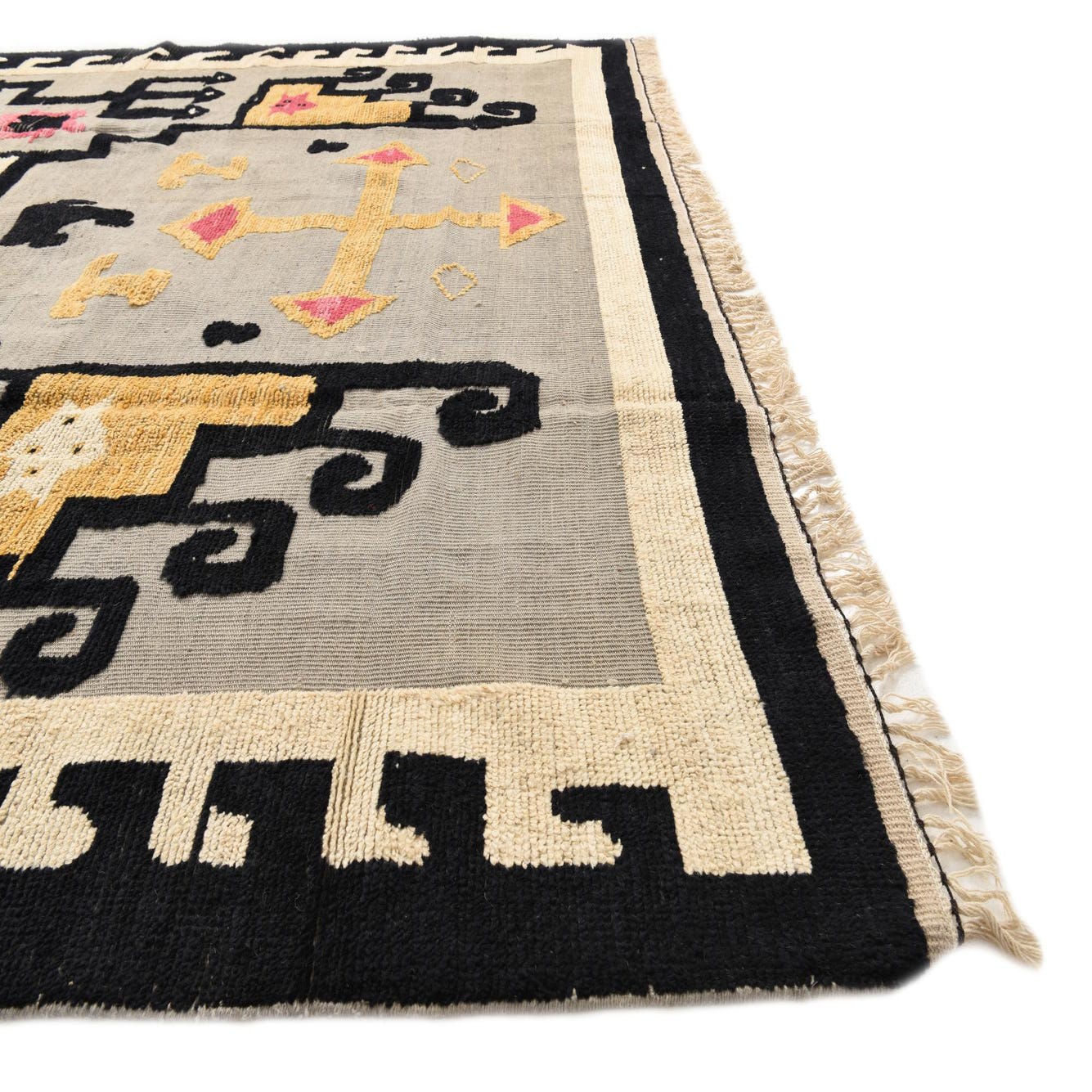 Primary color is Gray. Colors in this rug include: Gray, Black, Yellow, Pink, Ivory.