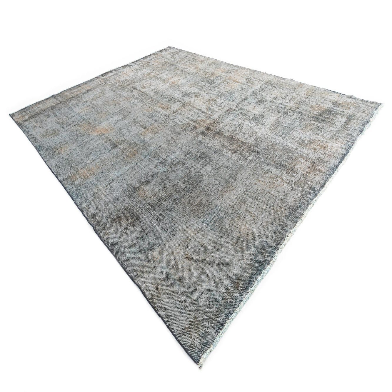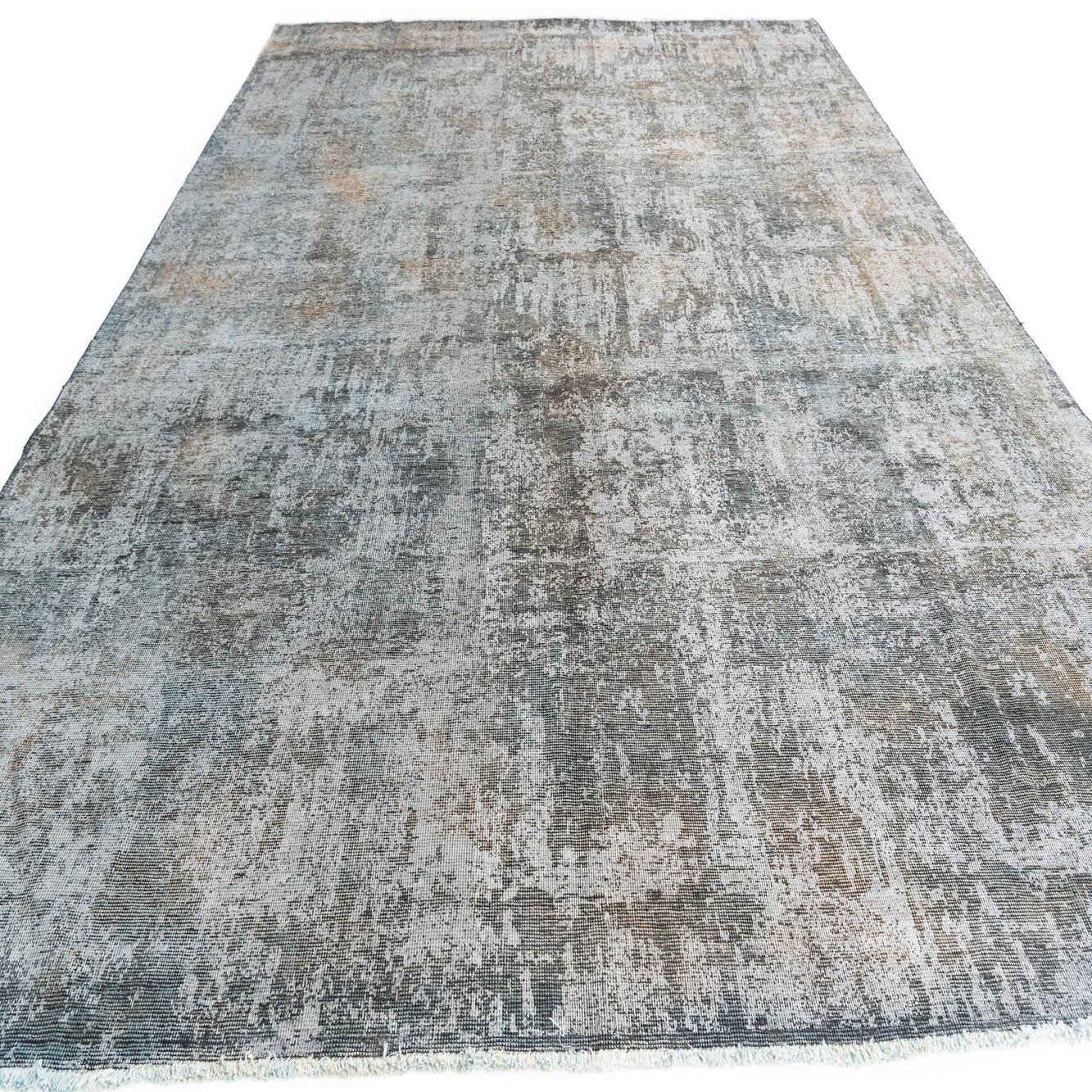 A large 10x13 rectangular Ultra Vintage rug in shades of gray and silver with an abstract, distressed Persian pattern.