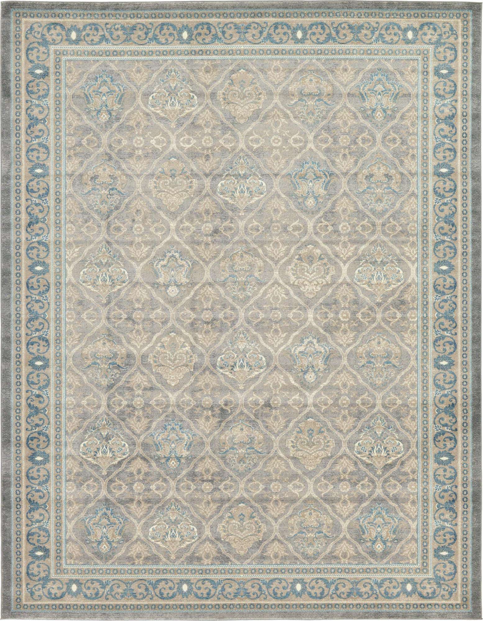 Its intricate pattern and cool-toned color palette make this rug an excellent choice for interiors inspired by traditional, transitional, or contemporary decor. The subtle sophistication of the design allows it to be a grounding element in a living room, dining area, or spacious bedroom, where it can complement both neutral and bolder color schemes. The rug's ability to resist stains and shedding makes it a practical choice for high-traffic areas or homes with pets and children.
