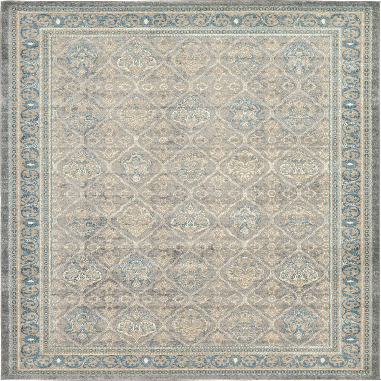 Primary color is Gray. Colors in this rug include: Gray, Light Blue, Ivory.
