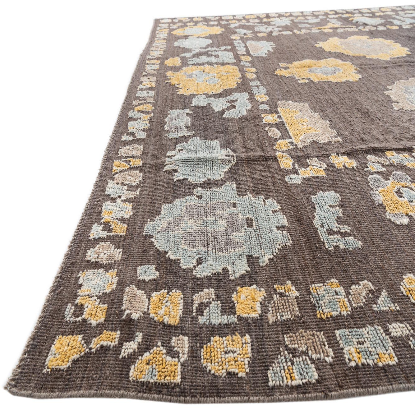 Primary color is Gray. Colors in this rug include: Gray, Brown, Light Blue, Light Brown, Yellow, Ivory.