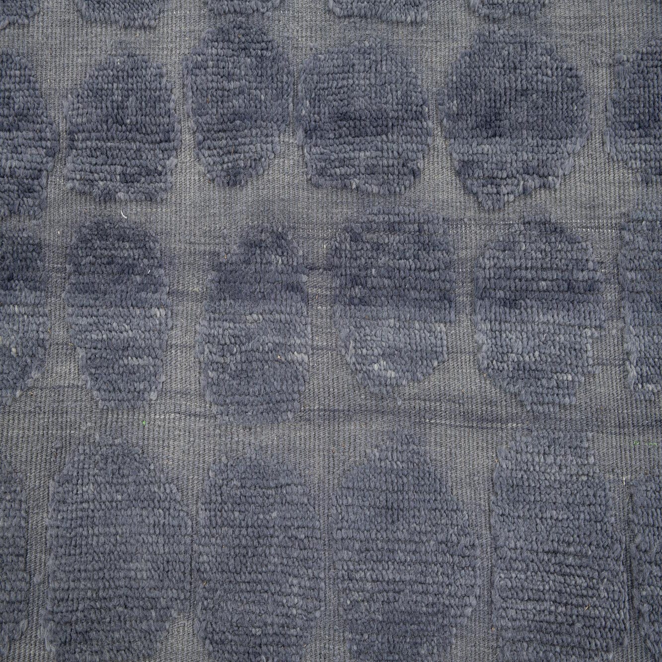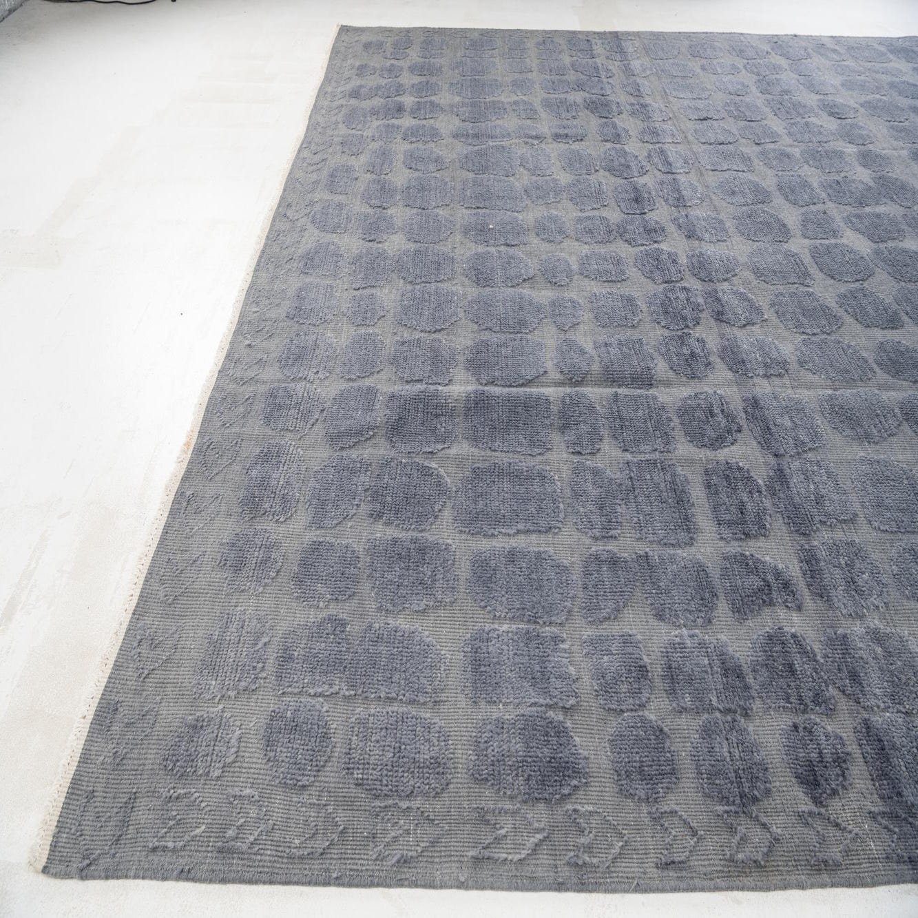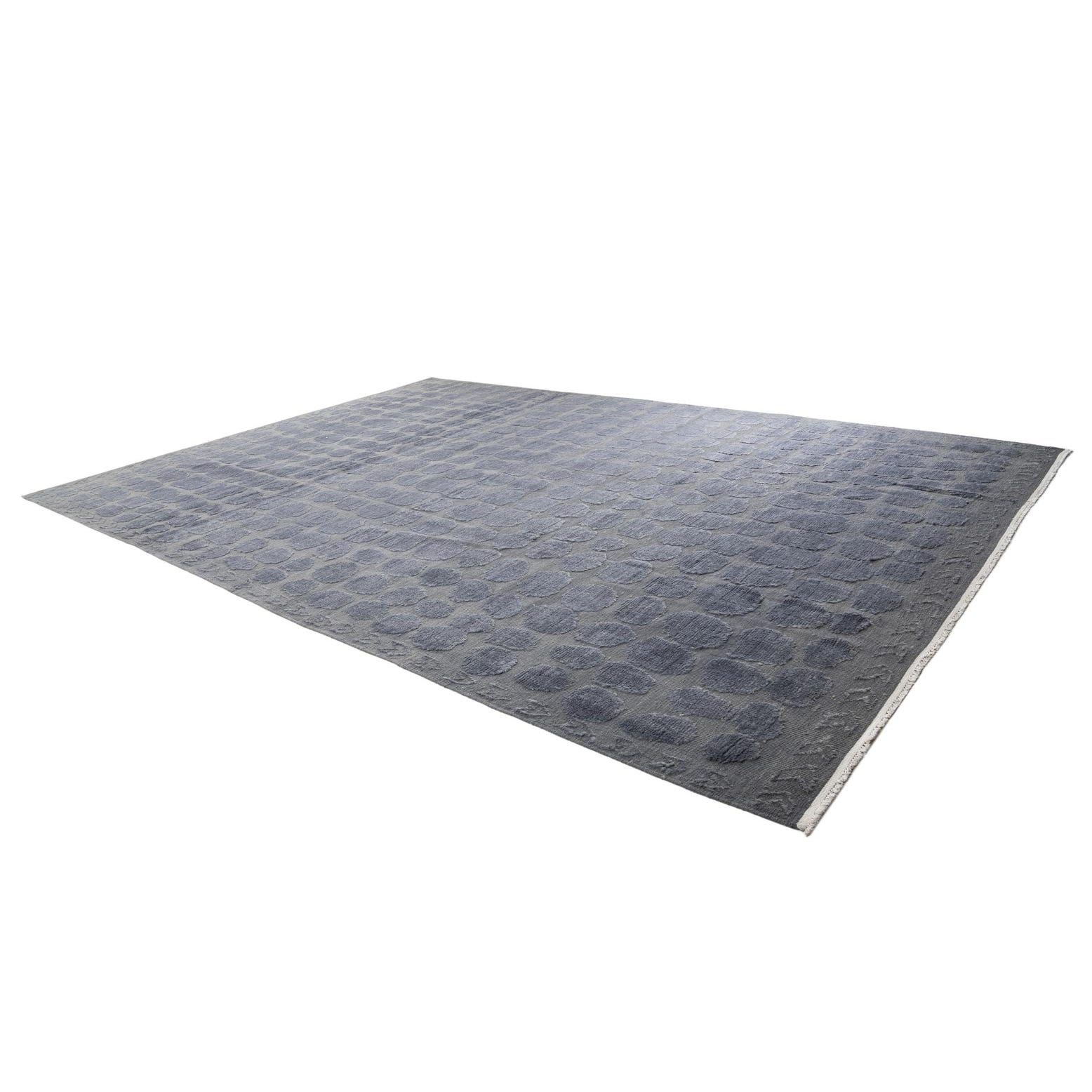 A 10x14 rectangular gray wool area rug with a modern abstract pattern of varying circular shapes.