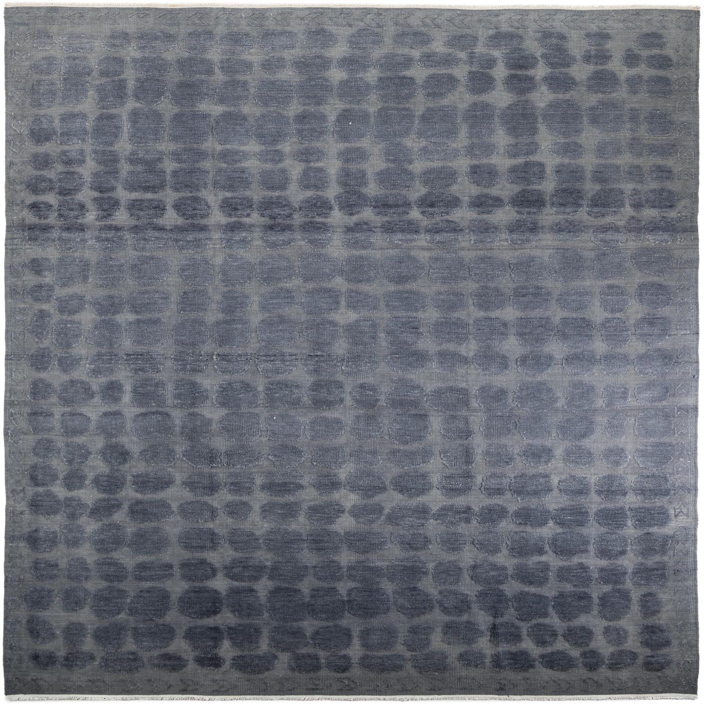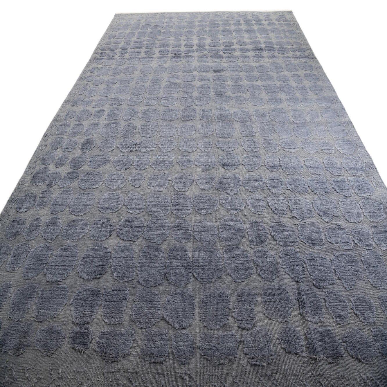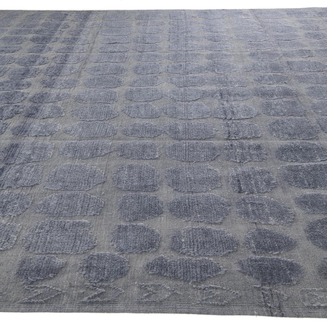 A 10x14 rectangular gray wool area rug with a modern abstract pattern of varying circular shapes.