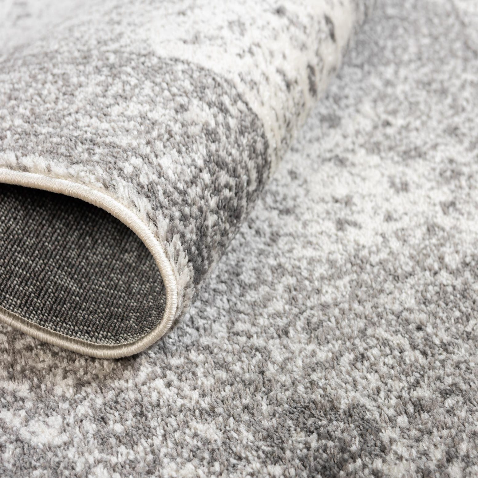 Primary color is Gray. Colors in this rug include: Gray, Ivory.