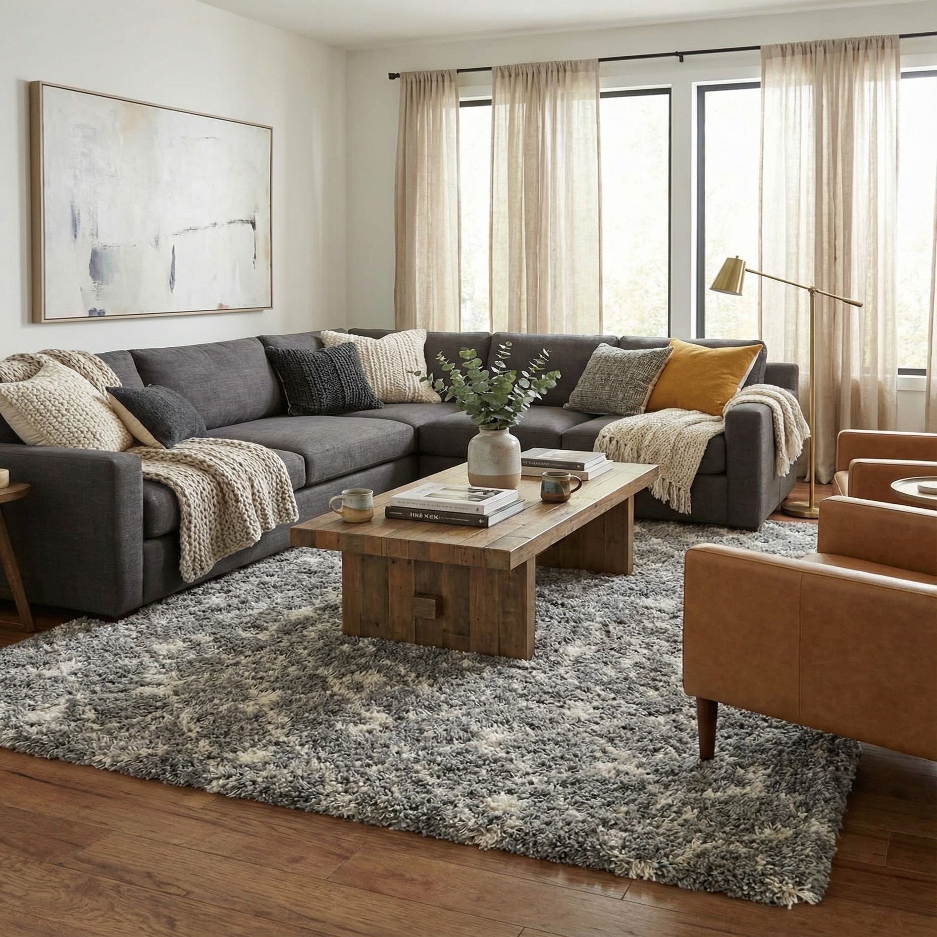 This rug pairs naturally with light-wood or painted floors and neutral upholstery, bringing a subtle graphic element to modern farmhouse, transitional, or Scandinavian-inspired rooms. Use it to anchor a living room seating area, soften a bedroom layout by layering at the foot of the bed, or add warmth and texture to a family room where you want a comfortable, lived-in feel.