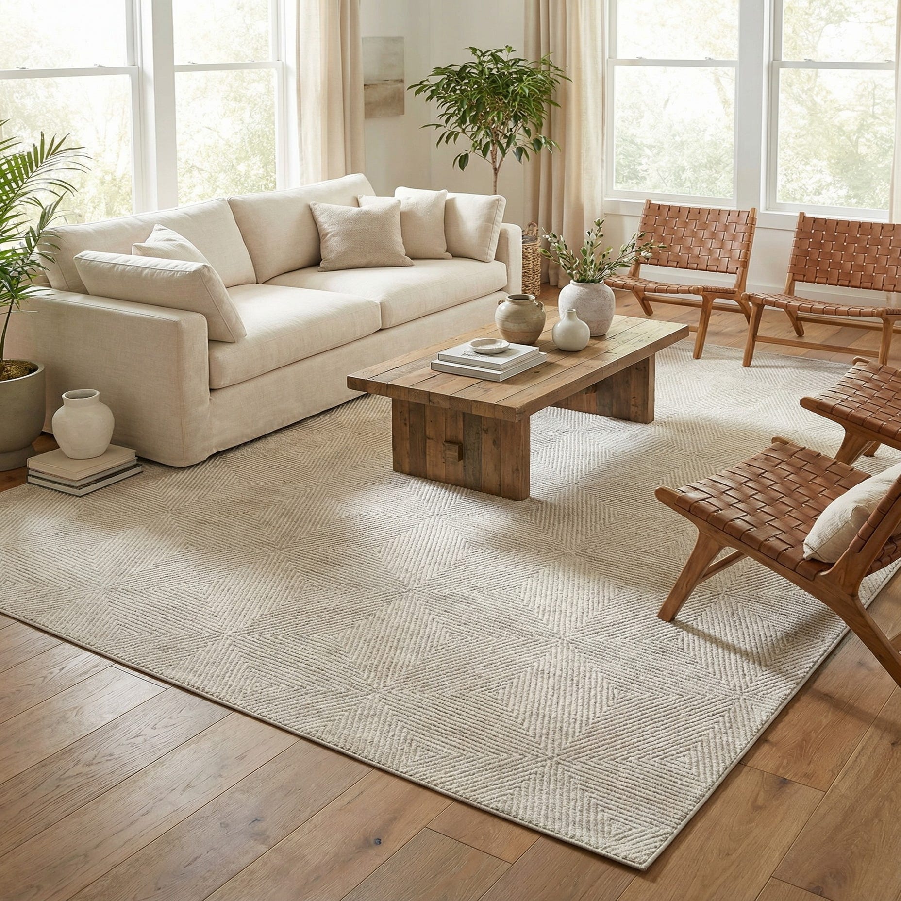 A 10x14 rectangular gray modern rug with a subtle geometric triangular pattern, suitable for indoor or outdoor use.