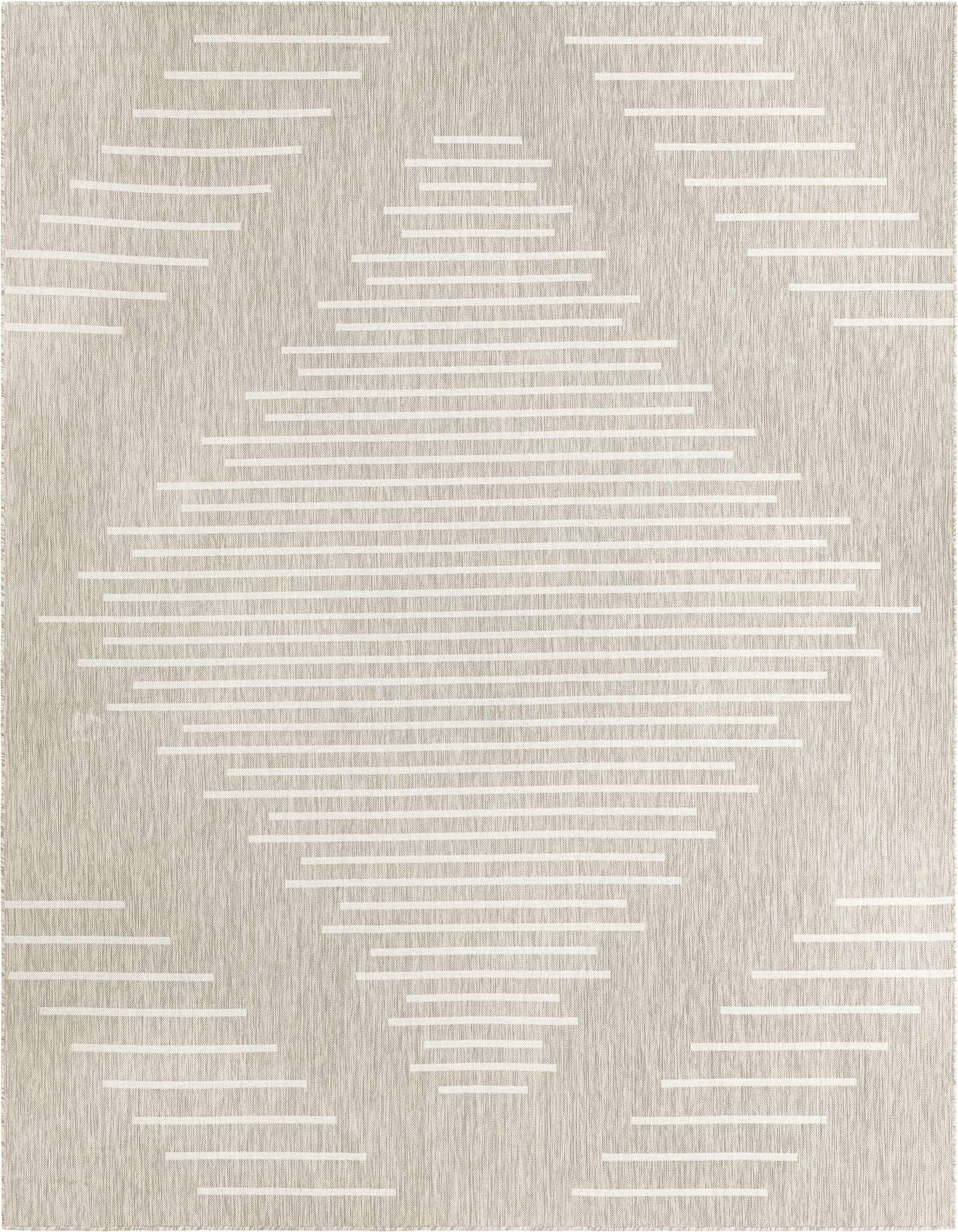 The Outdoor Modern Collection presents a versatile 11 Ft Square rug meticulously machine-woven of 100% polypropylene. This rug showcases a harmonious blend of gray and ivory hues with the gray providing a neutral background. Its flatweave construction lends a smooth texture that is both durable and comfortable underfoot, ensuring longevity and ease of movement. This piece features a minimalist geometric pattern that imbues it with a contemporary aesthetic suitable for a range of decors.