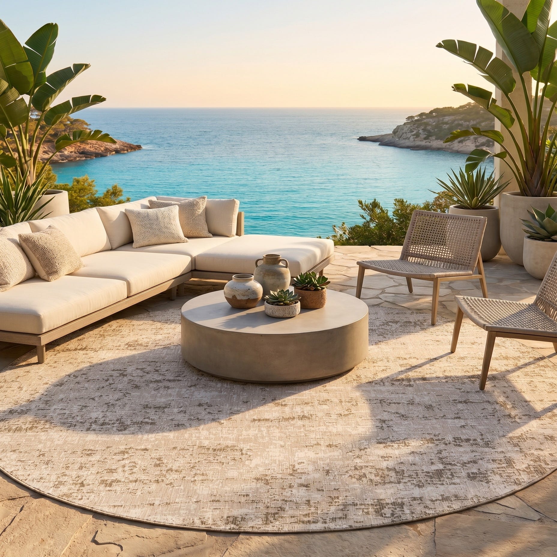 13' x 13' Easy-Clean Modern Indoor / Outdoor Round Rug