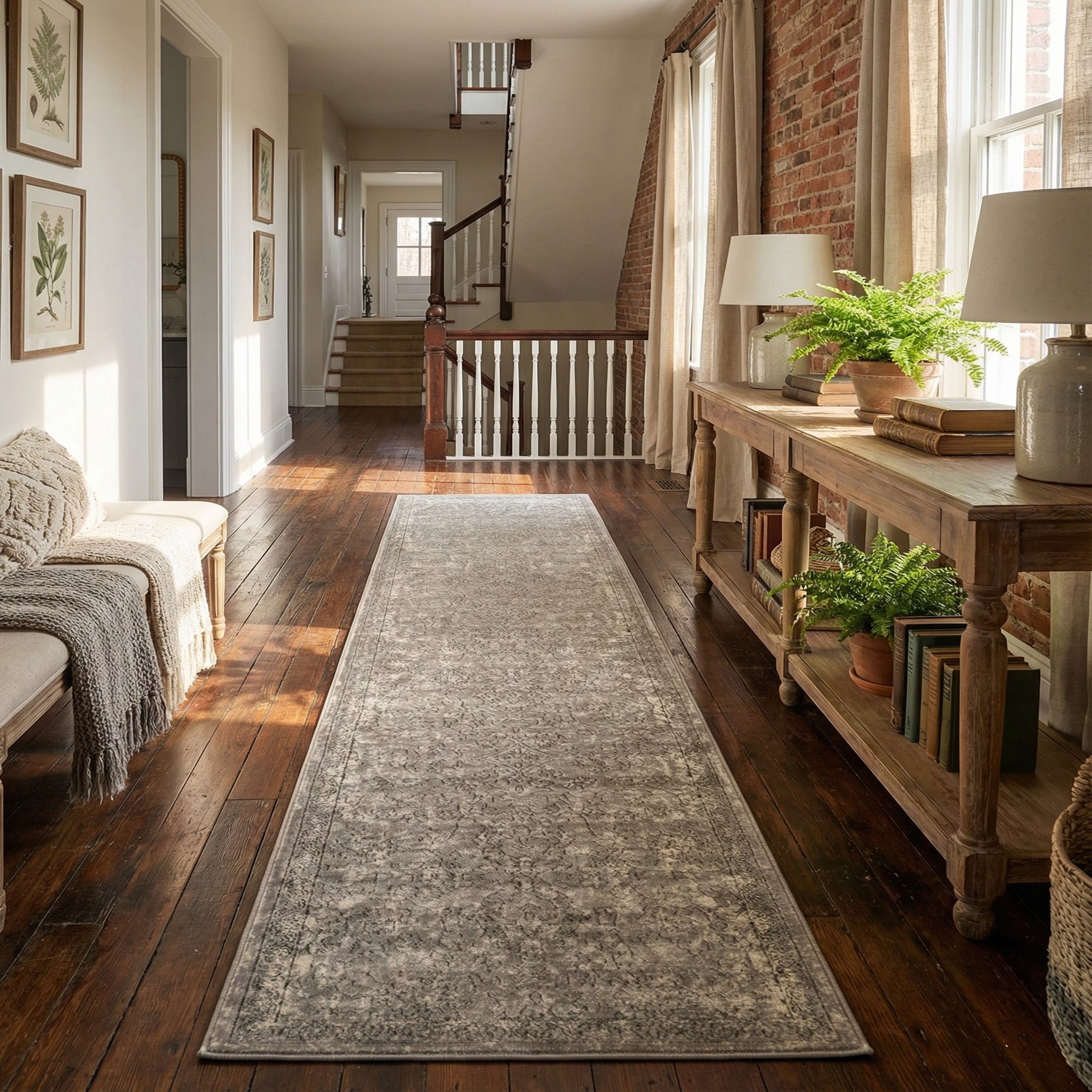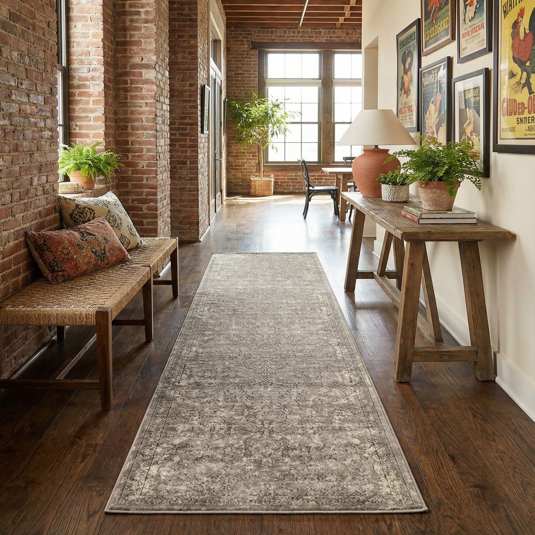 Primary color is Gray. Colors in this rug include: Gray, Ivory.