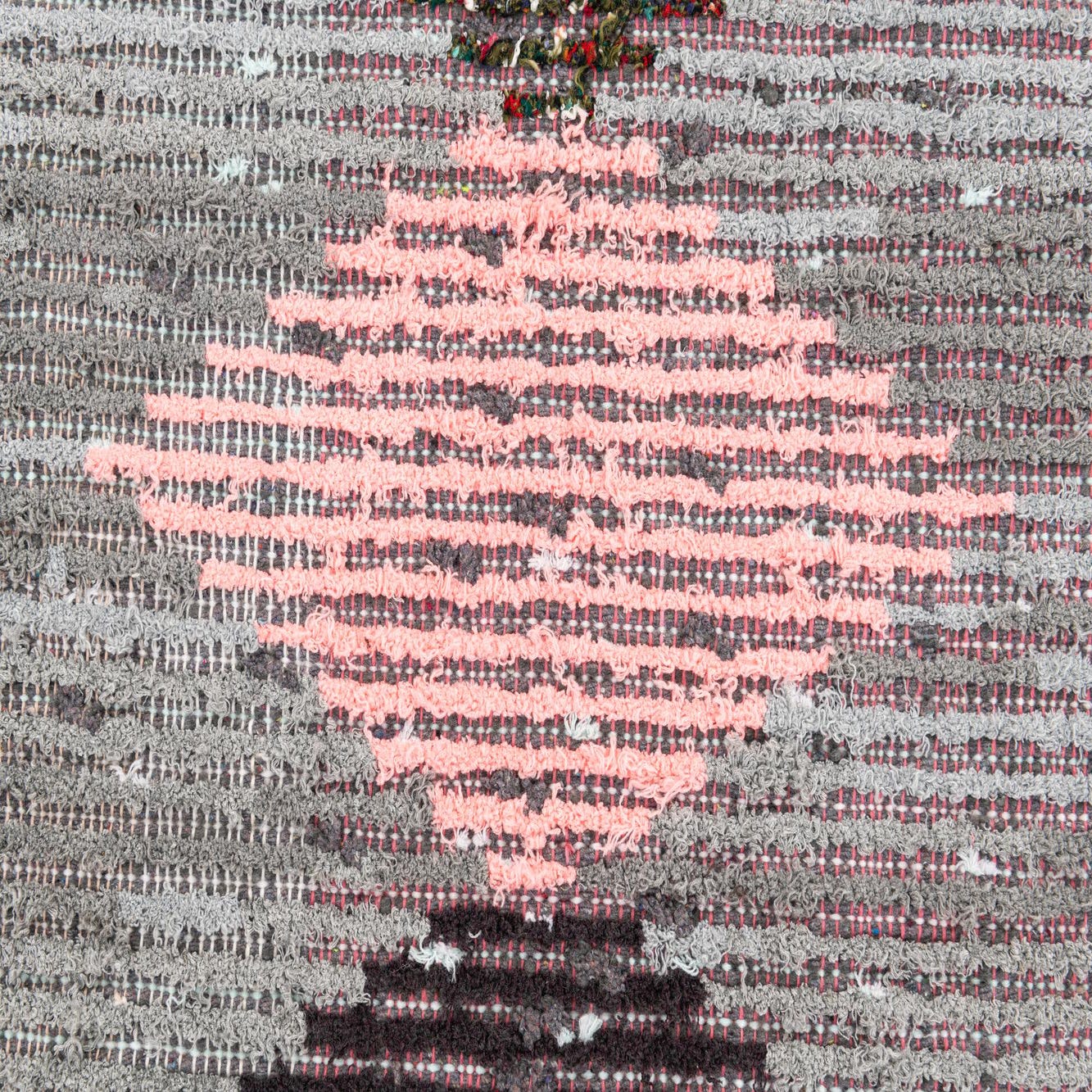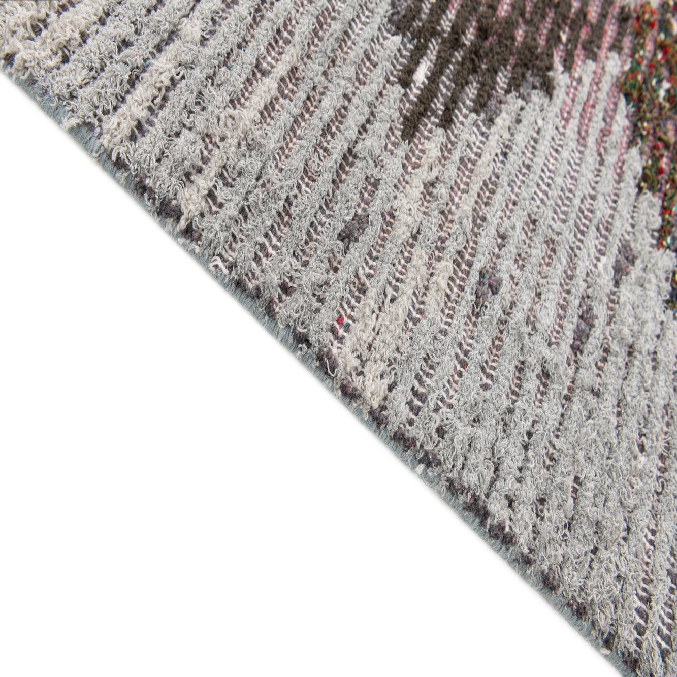 Primary color is Gray. Colors in this rug include: Gray, Brown, Pink, Light Blue.