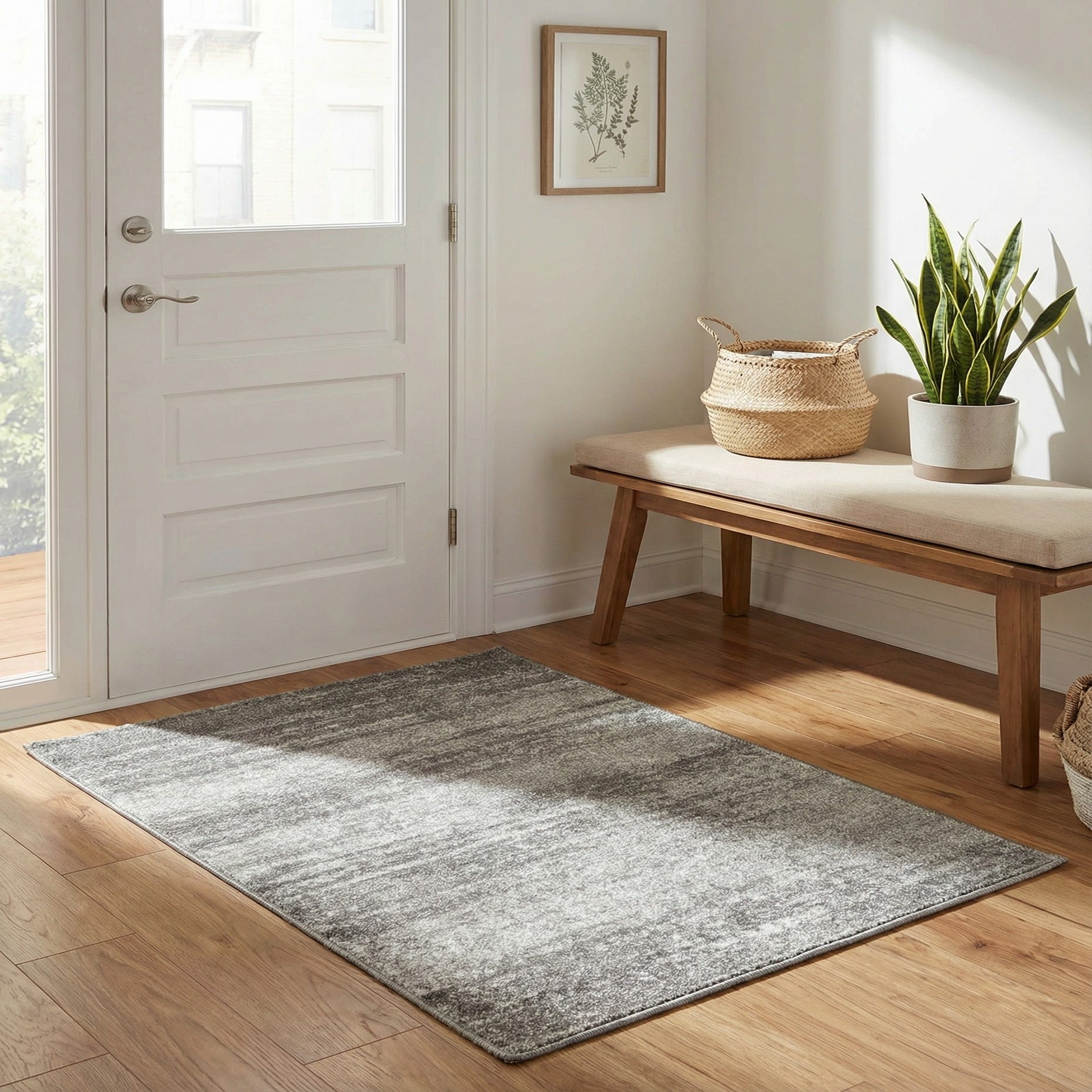 This neutral piece works well in contemporary and transitional settings: place it in a compact entryway to add texture beneath a console, layer it in front of a sofa in a living room with light wood or metal accents, or tuck it beside a bed to warm a modern bedroom. It also pairs nicely with Scandinavian, coastal, or minimalist interiors where restrained color and tactile detail help anchor the space.
